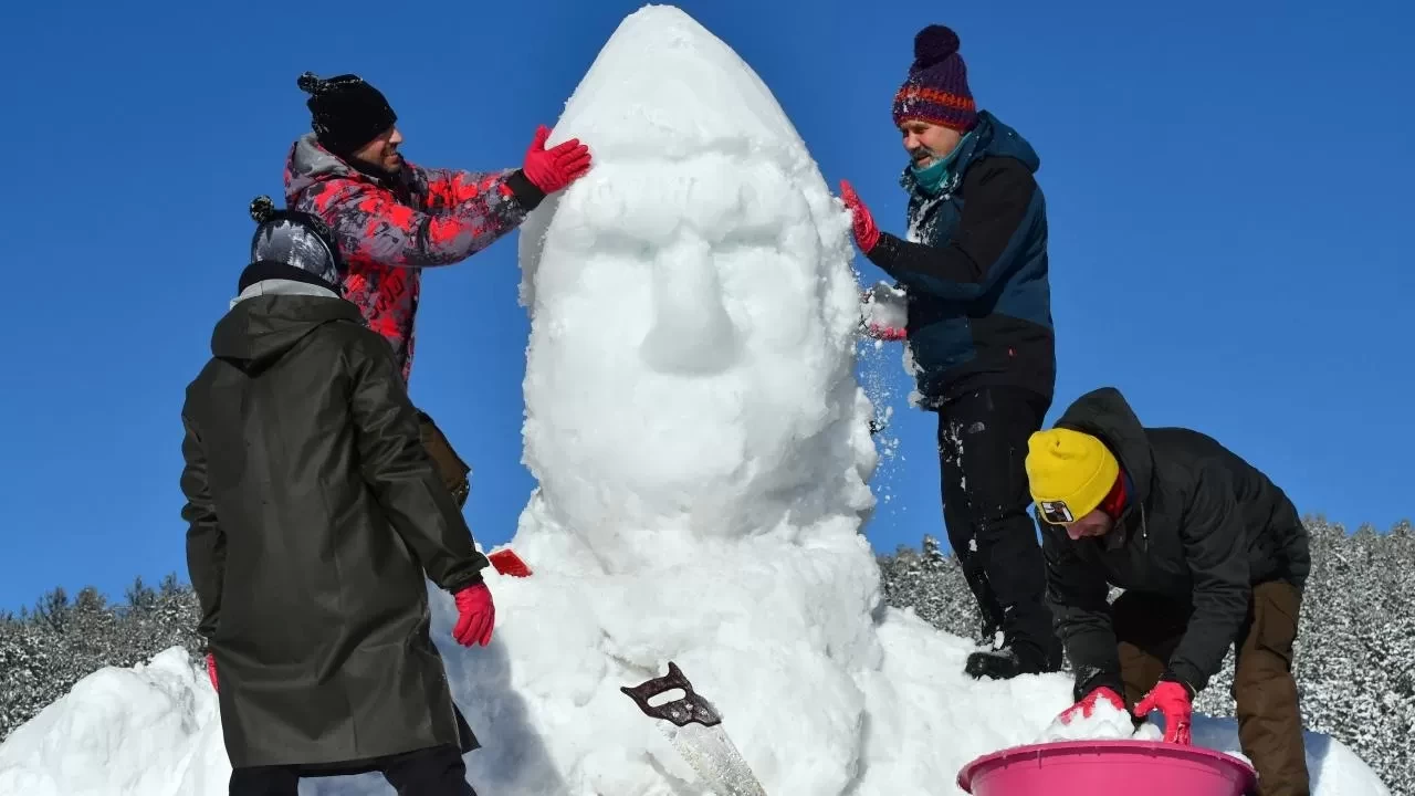KAÜ ile Atatürk Üniversitesinden akademisyen ve öğrencilerden oluşan 6 kişilik ekip tarafından, taşınan yaklaşık 200 kamyon karla 2 bin 600 rakımlı Kızılçubuk mevkiinde kardan heykellerin yapılmasına başlandı.