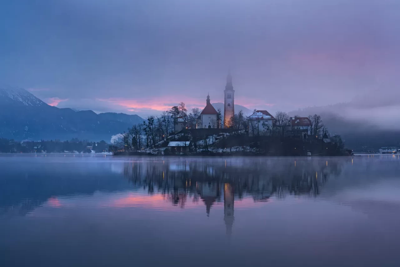 Slovenya'nın Gorenjska bölgesindeki Bled kasabasında yer alan Bled Gölü, özellikle sisli havalarda adeta bir masal diyarını andırıyor.