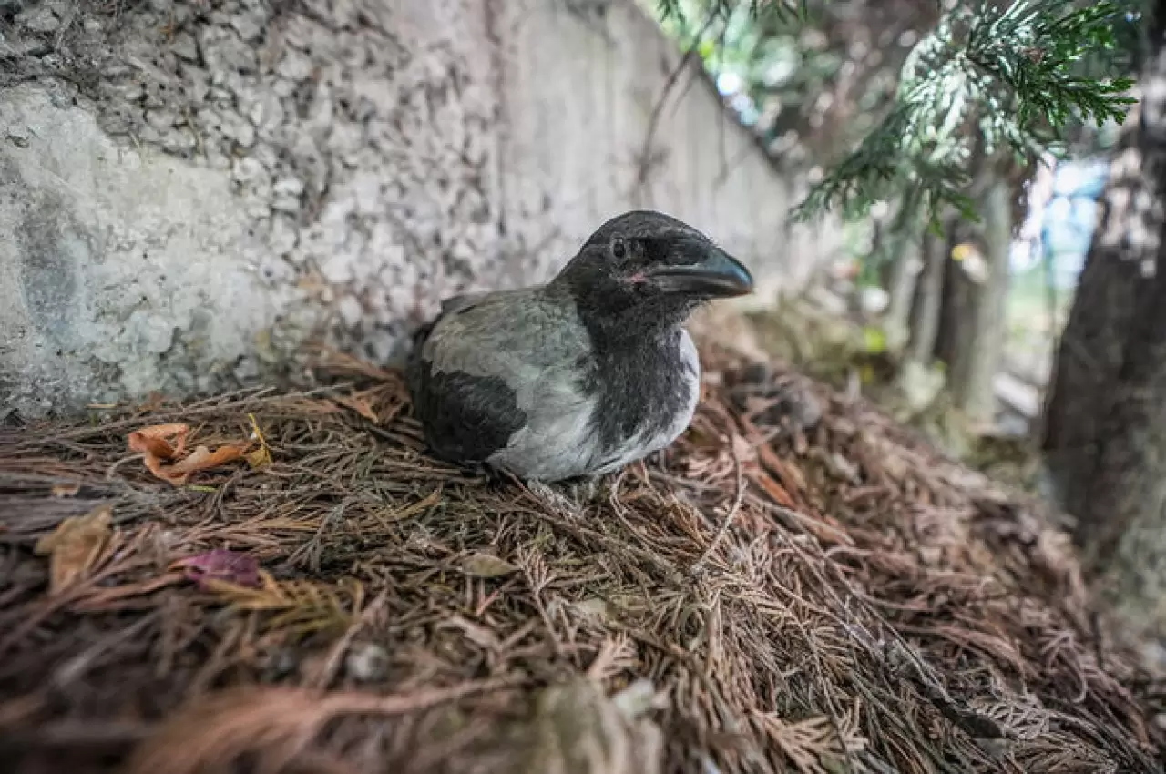 Alçaktan uçarak sürekli ses çıkaran kargalar, aynı bölgede hareket edemeyen bir arkadaşlarının bulunduğunu fark ettirdi. Vatandaşlar, kargaların yönlendirmesiyle yaralı kargayı sokak kenarındaki ağaçların altında buldu.