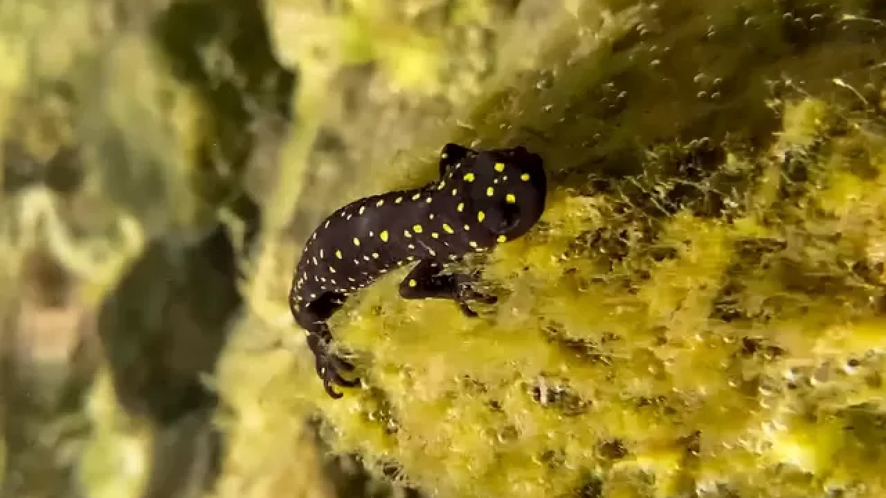 Göletin içinde görüntülenen bu canlıların, Anadolu'nun endemik türlerinden biri olan sarı benekli semenderler olduğu ortaya çıktı.