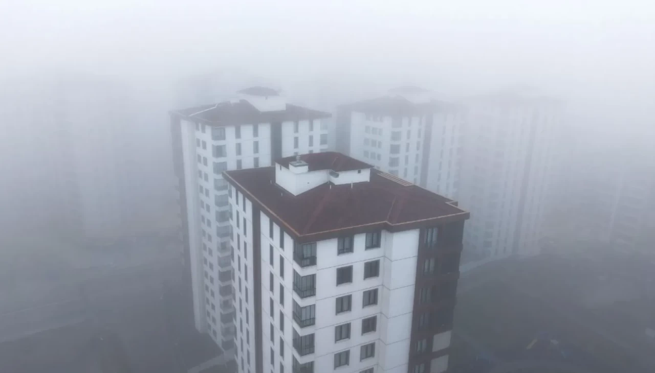 Drone ile çekilen görüntüler, sis altındaki kentin manzarasını gözler önüne serdi.