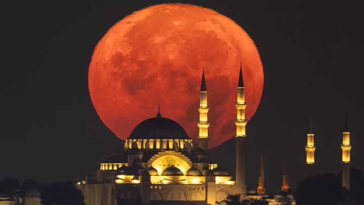 İstanbul'da dolunay, Süleymaniye Camii ile birlikte görüntülendi.