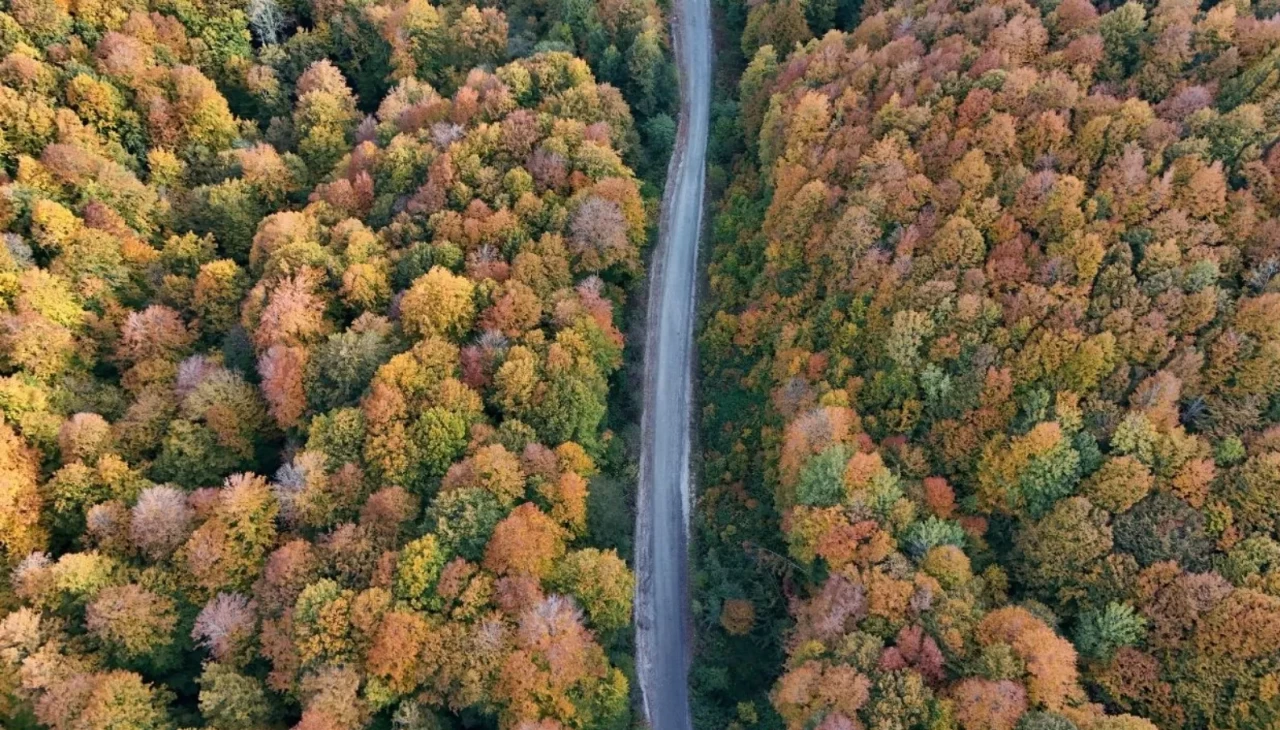 Meşe ve çam ağaçlarının yeşilden sarıya, turuncudan kahverengiye uzanan tonları görsel şölen sunuyor.