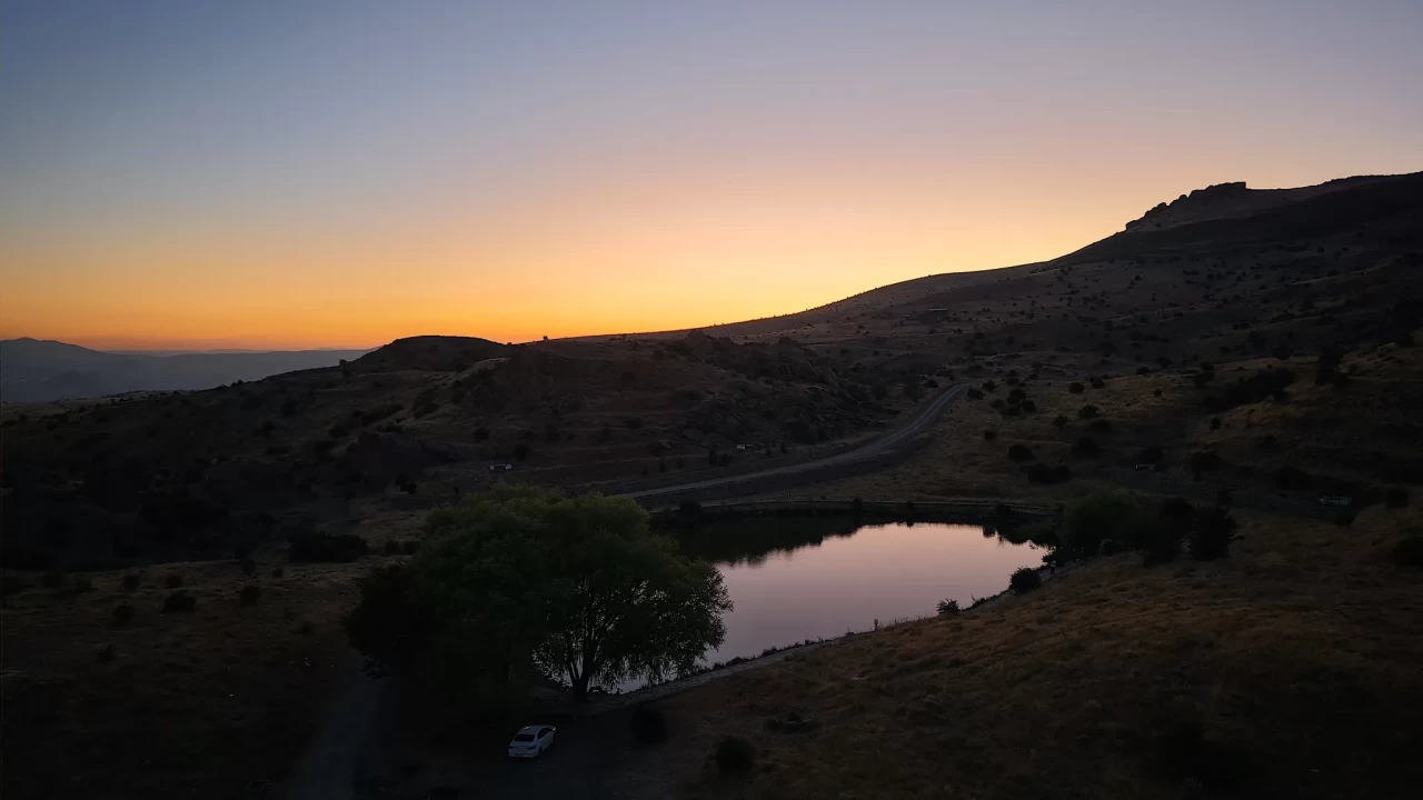 Gün batımında ortaya çıkan etkileyici görüntüler, dronla kayıt altına alındı.