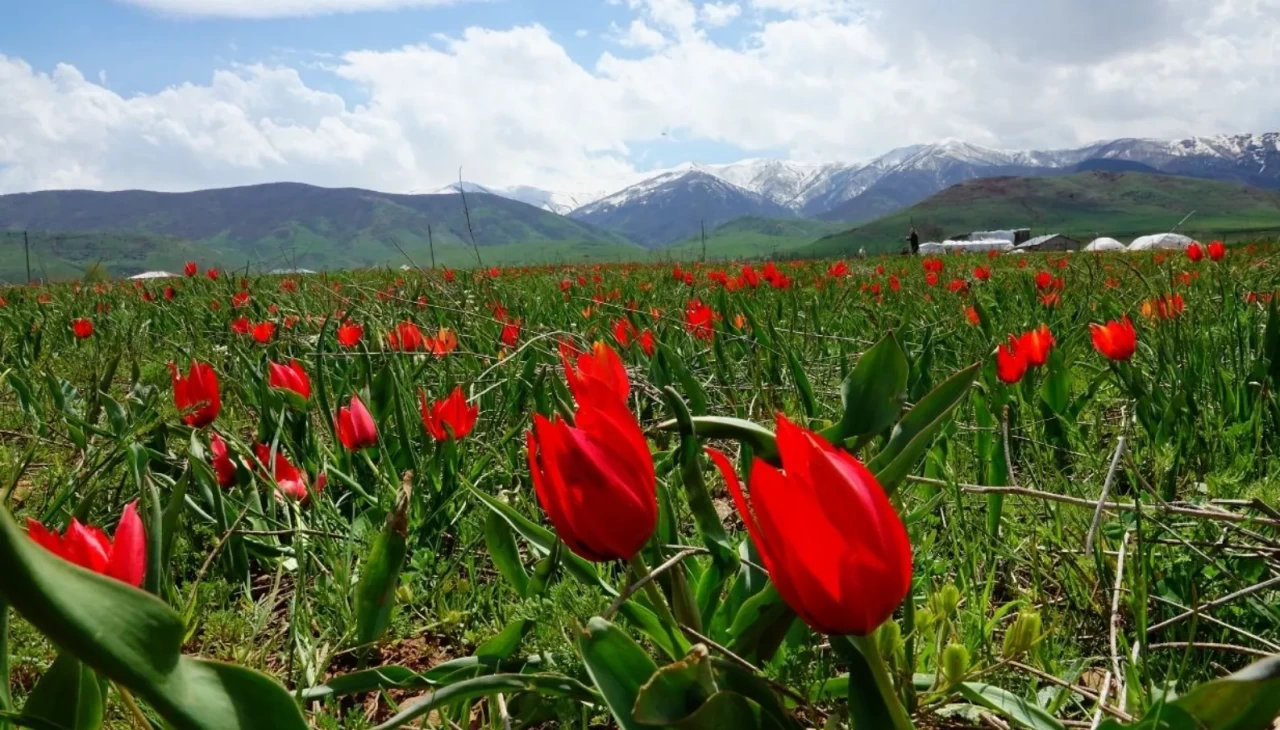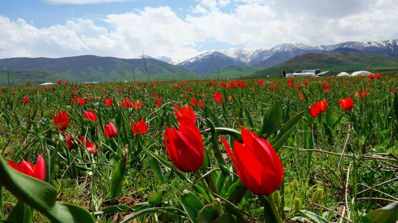 Baharın gelişi ile çiçek açan lalelerle bezenen ova, ziyaretçilerden yoğun ilgi görüyor.
