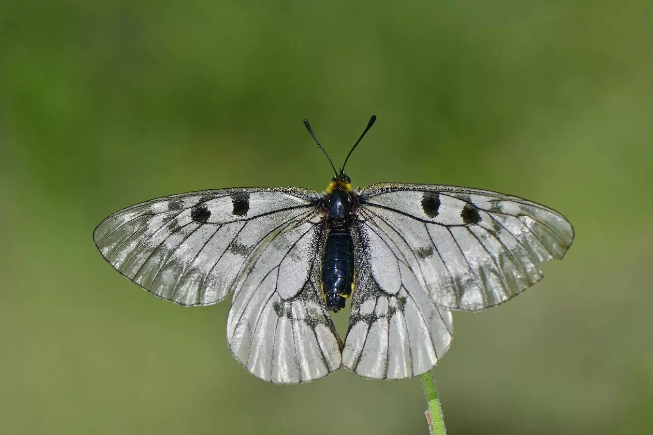 "Beyaz kanatları üzerindeki zarif siyah desenleriyle doğanın en sade ama en etkileyici kelebeklerinden biri. Bilimsel adıyla Parnassius mnemosyne, özellikle serin ve nemli dağ ormanlarında yaşamayı tercih eder. Uludağ’ın zengin florası, bu tür için önemli bir barınak niteliğinde."