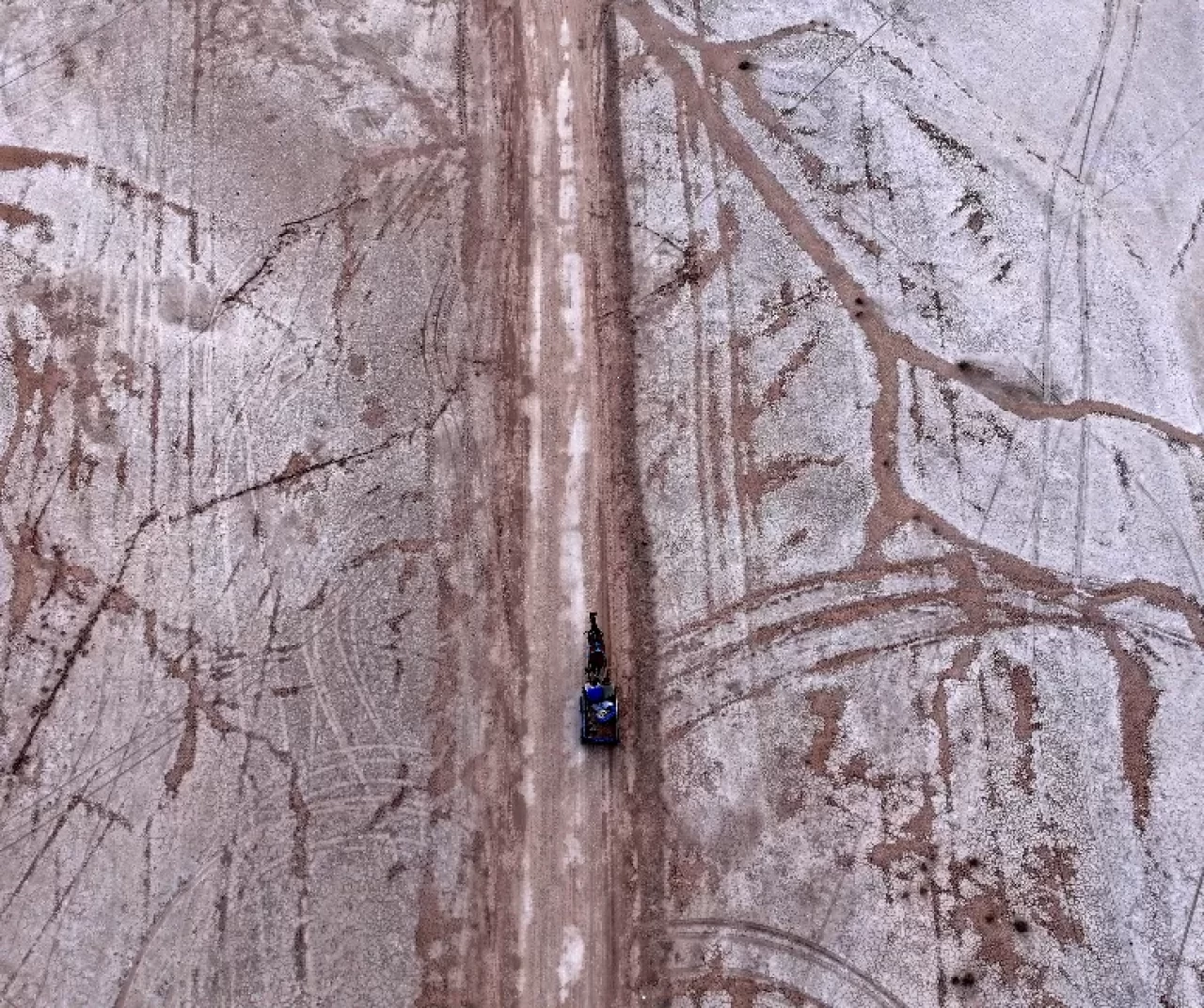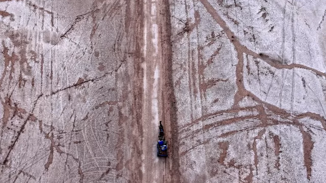 Yaklaşık 2 kilometrelik yoldan sonra göle ulaşan Gökkurt, gölün zemini yumuşamadan günlük tuzunu çıkarıyor.