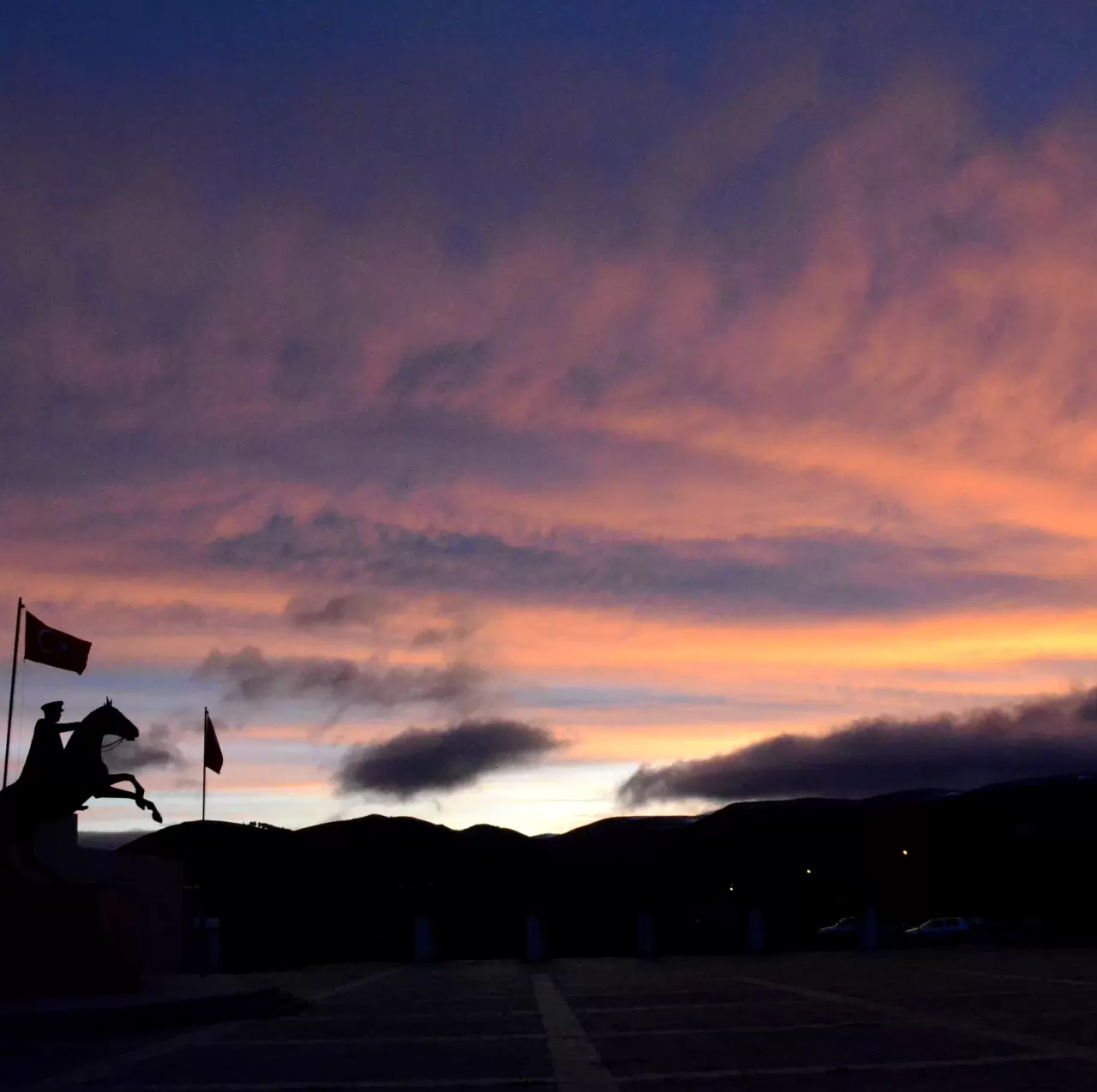 Akşam saatlerinde güneşin ufukta batmasıyla birlikte, gökyüzünü saran kızıl tonlar, izleyenleri adeta büyüledi. Sarıkamış semalarında oluşan bu görsel şölen, ziyaretçilere huzur dolu anlar yaşattı.