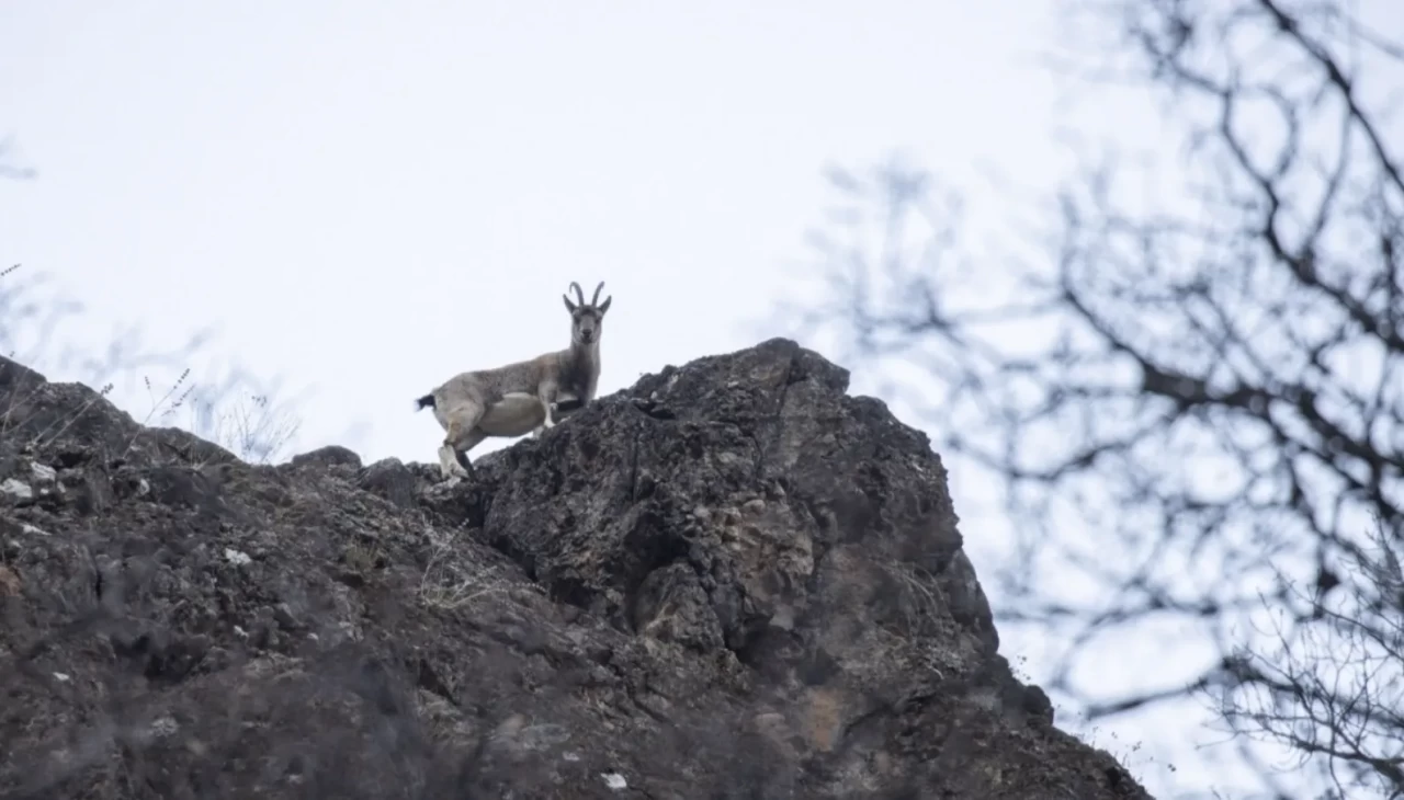 Koruma altında bulunan yaban keçileri, Munzur Vadisi Milli Parkı içerisinde görüntülendi. Arazide meşe dalları ve kuru otlarla beslenen keçiler, doğal yaşam alanlarında kayıt altına alındı.