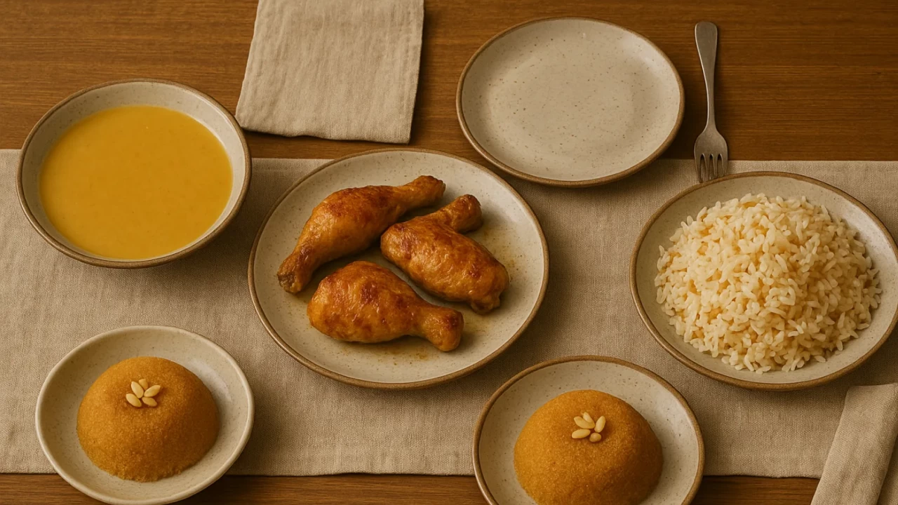 Günün temposunda bir de yemeğe ne yapacağını bulmakta zorlananlar için günün menüsünde; mercimek çorbası, fırında tavuk but, şehriyeli pirinç pilavı ve irmik helvası tarifleri var.