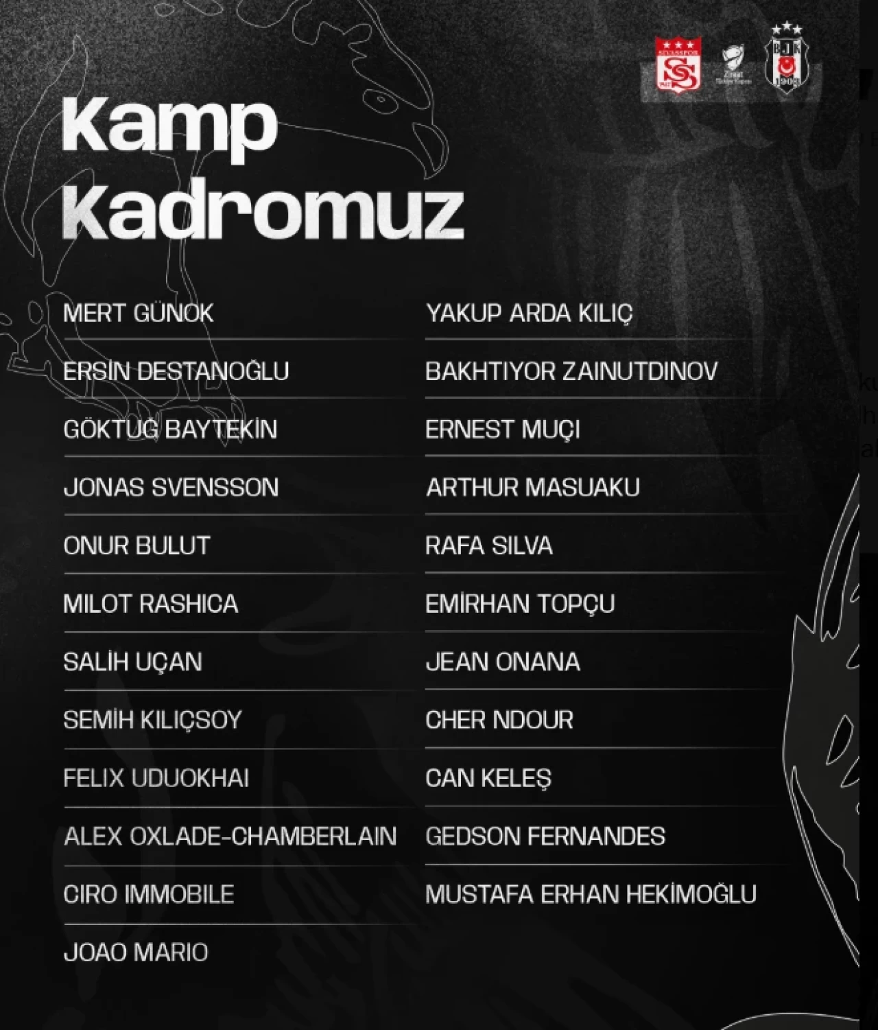 Beşiktaş’ın Sivasspor karşılaşması için belirlenen kamp kadrosu şu şekilde: