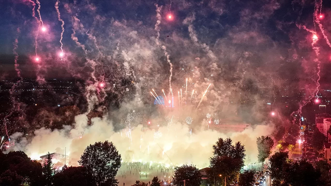 Saatler 21.16’yı gösterdiğinde, binlerce meşale yakıldı, havai fişek gösterileriyle kutlamalar renkli anlara sahne oldu. Taraftarlar kulübün marşlarını söyleyerek geceye coşku kattı.