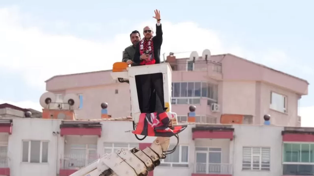 Uşak 1 Eylül Stadı’ndaki dolu tribünler arasında yerini alamayan başkan Kurnaz, çözümü vinç kiralayarak buldu. Mücadeleyi, stat dışından vincin tepesinden izleyen Kurnaz, takımını bu şekilde destekledi.
