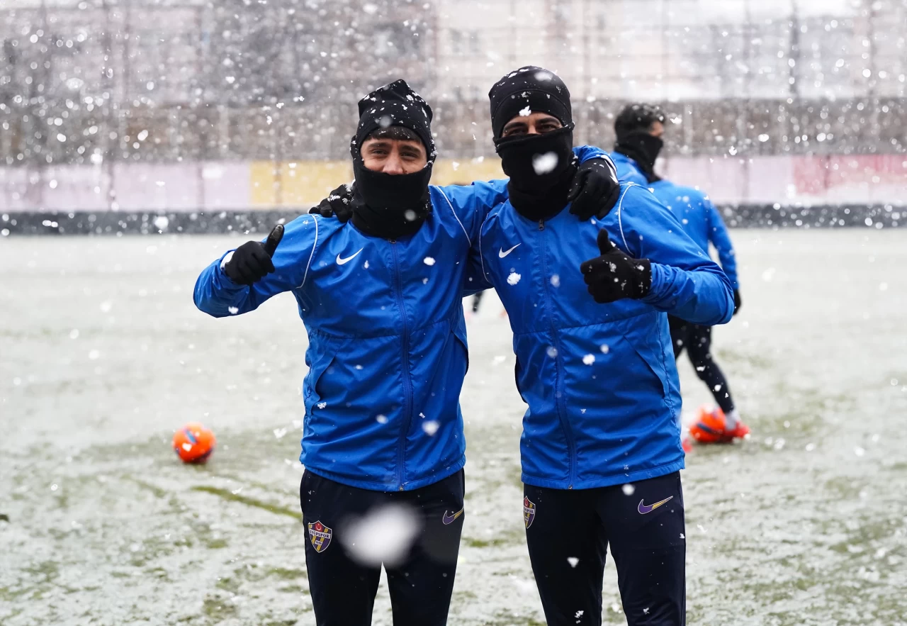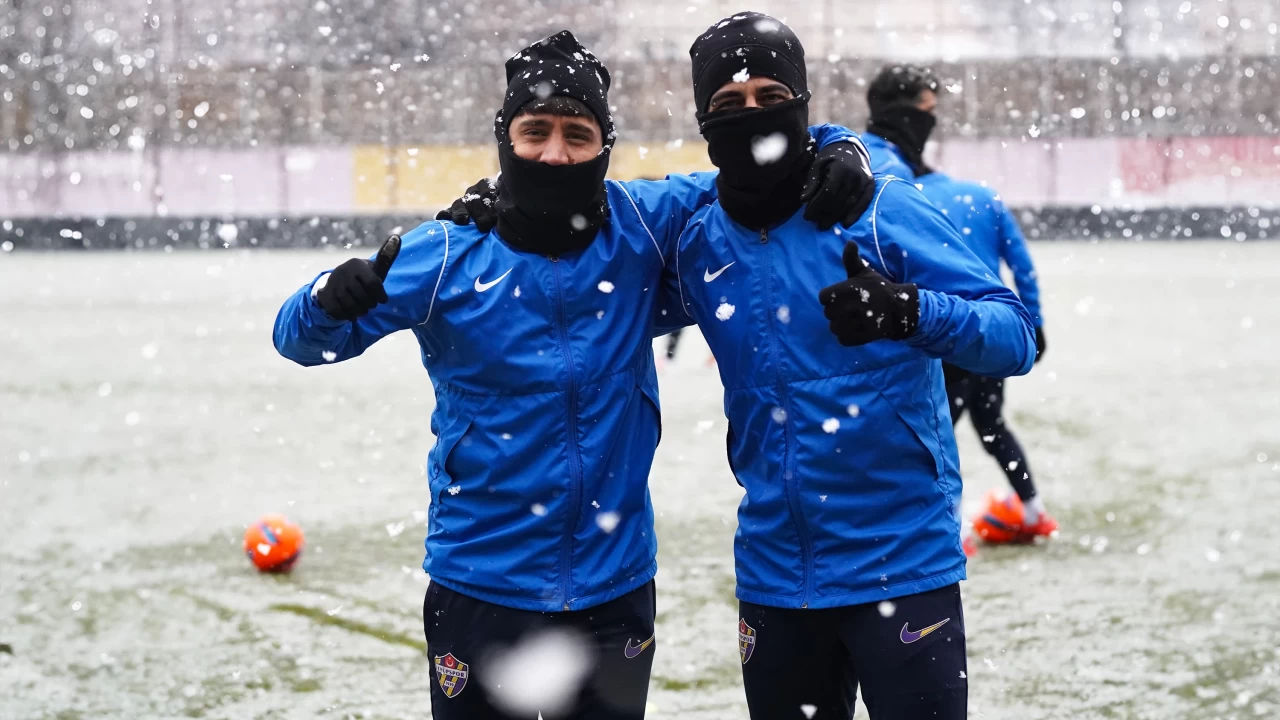 Eyüp Stadı’nda teknik direktör Arda Turan yönetiminde gerçekleştirilen antrenman, yoğun kar yağışı altında yapıldı. Isınma hareketleriyle başlayan antrenman, 5’e 2 top kapma çalışmasıyla devam etti. Eflatun-sarılı ekip, antrenmanı dar alanda oynanan çift kale maçla tamamladı.