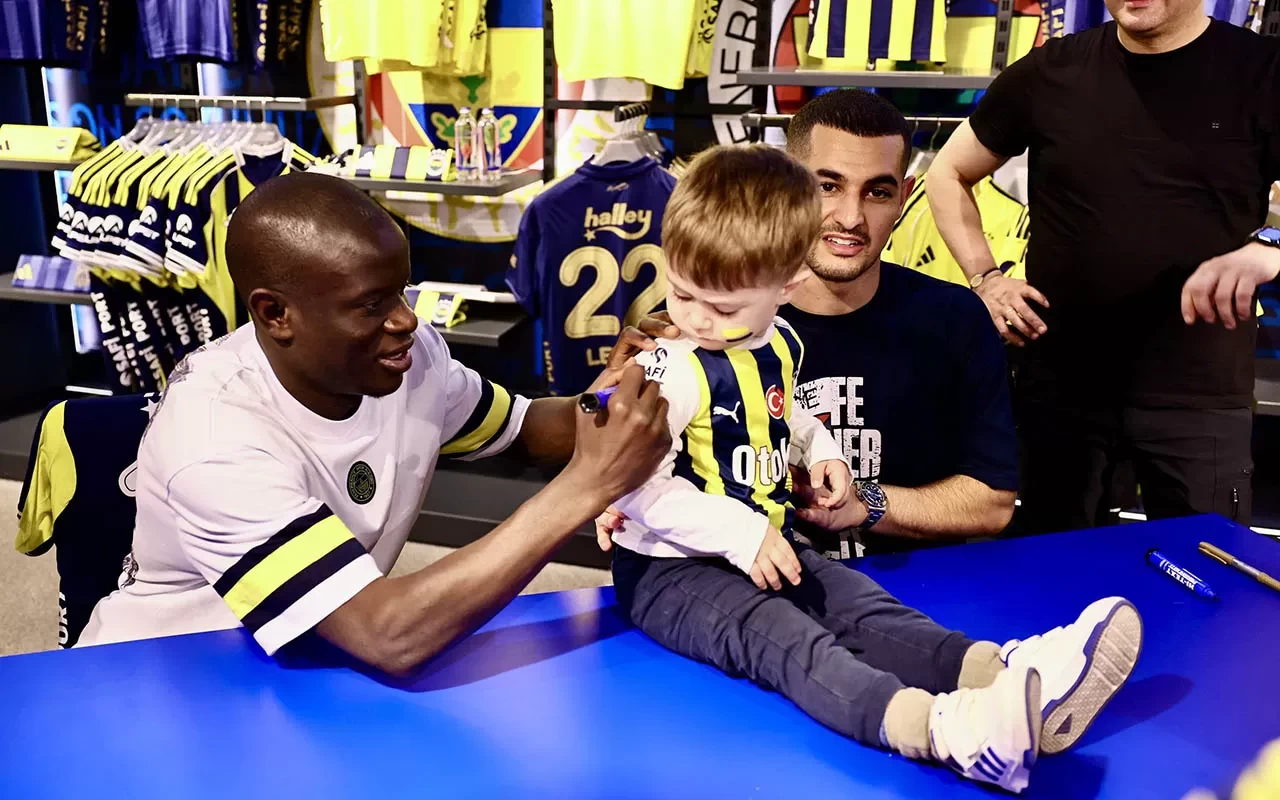 Fenerbahçe'nin Mali asıllı Fransız futbolcusu N'Golo Kante ile Levent Mercan, Kadıköy'de yer alan kulüp mağazasında taraftarlarla bir araya geldi.