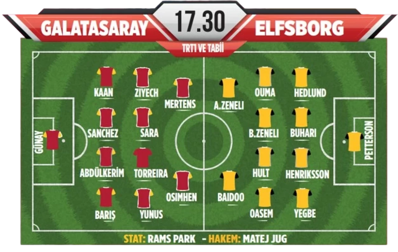 İlk bölümü ilk 8 içinde bitirmeyi hedefleyen sarı kırmızılılar, RAMS Park’ta saat 17.30’da başlayacak maça sakat Ismail Jakobs ve UEFA listesinde bulunmayan Roland Sallai’den yoksun çıkacak. TRT1 ve Tabii dijital platformundan yayınlanacak zorlu karşılaşmayı Sloven Matej Jug, Matej Zunic, Manuel Vidali hakem üçlüsü yönetecek.