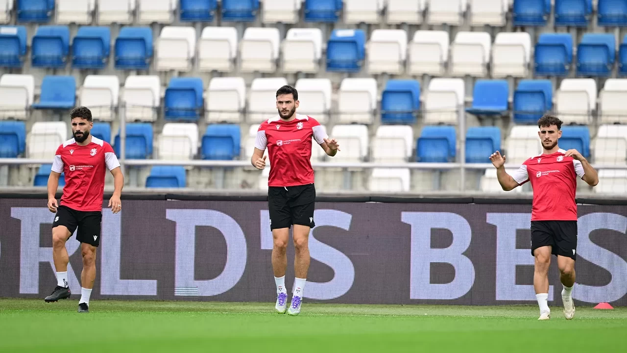 Karşılaşmanın oynanacağı Boris Paichadze Ulusal Stadı’nda, teknik direktör Willy Sagnol yönetiminde gerçekleştirilen idmanın ilk 15 dakikası basına açık yapıldı. Bu bölümde futbolcular ısınma, koşu ve pas çalışmaları gerçekleştirdi.