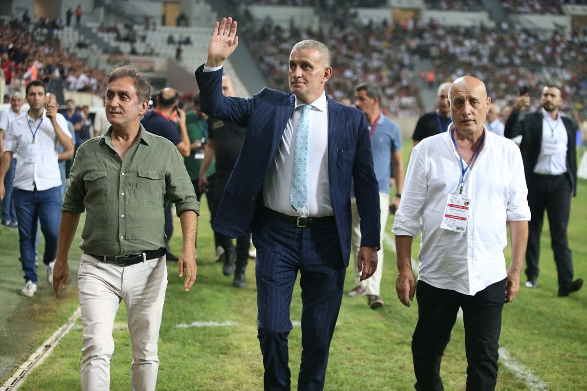 Maç öncesi TFF Başkanı İbrahim Etham Hacıosmanoğlu, takımların başkanları ile taraftarları selamladı.