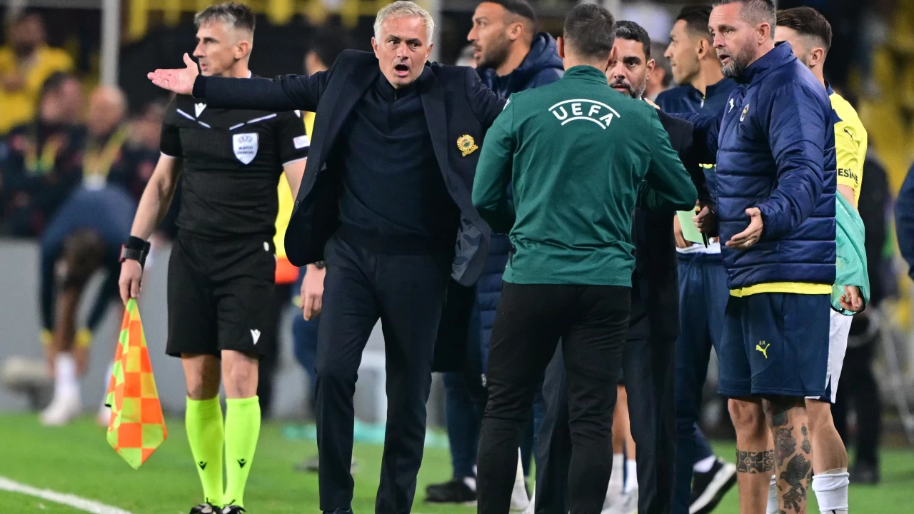 Fenerbahçe Teknik Direktörü Jose Mourinho, Manchester United maçında kırmızı kart görerek ceza aldı. Mourinho'un takımı, UEFA Avrupa Ligi'nde İngiliz rakibiyle 1-1 berabere kaldı. Hakem, penaltı talebi sonrası Mourinho'ya kartını gösterdi.