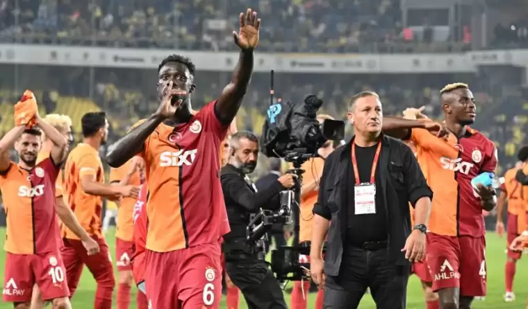 Galatasaraylı futbolcular, derbi galibiyeti sevincini deplasman tribünündeki taraftarlarıyla paylaştı.