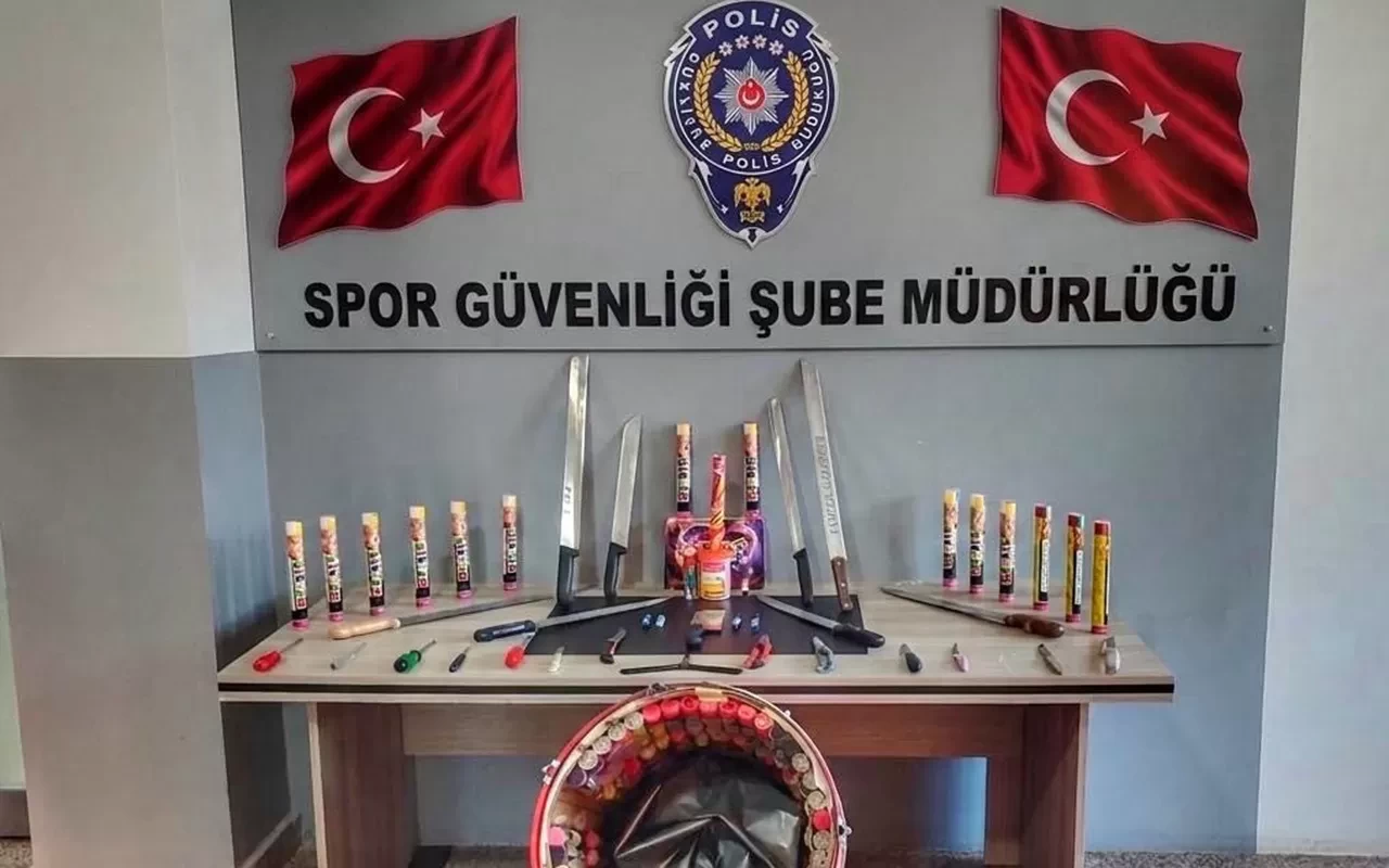 Misafir seyirci olarak gelen Göztepe taraftarlarını taşıyan deplasman otobüsünde yapılan aramalarda davul içerisine zula yapılarak gizlenmiş 80 adet meşale bulundu. Aramalarda ayrıca 16 adet meşale, 130 adet maytap ve 1 adet yoğun sis bombası ele geçirildi. Denetimlerde 8 adet döner bıçağı, 1 adet büyük satır, 13 adet bıçak, çeşitli delici-kesici aletler ile 1 adet kelebek bıçak da ele geçirildi.