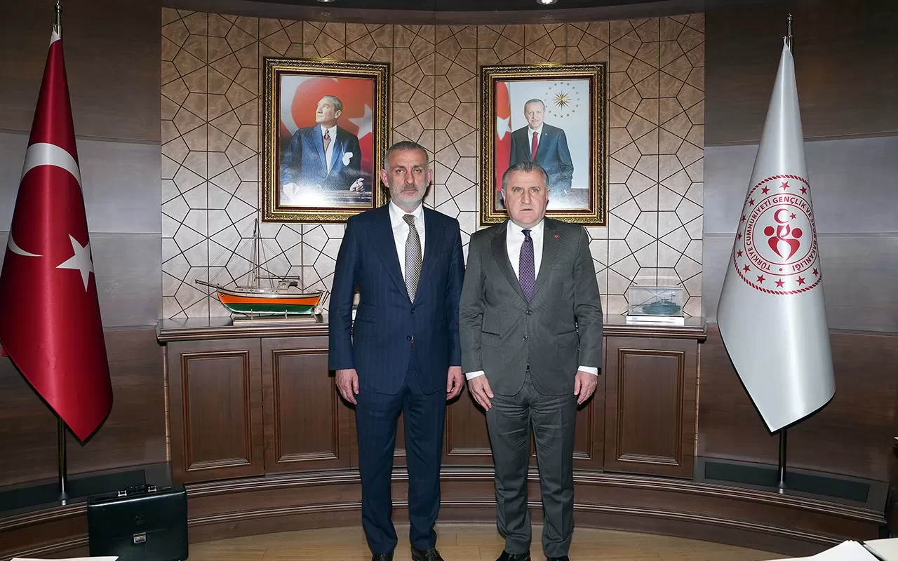 TFF'den yapılan açıklamaya göre başkent Ankara'da görüşmeler yapan Hacıosmanoğlu, Osman Aşkın Bak'a makamında ziyarette bulundu.
