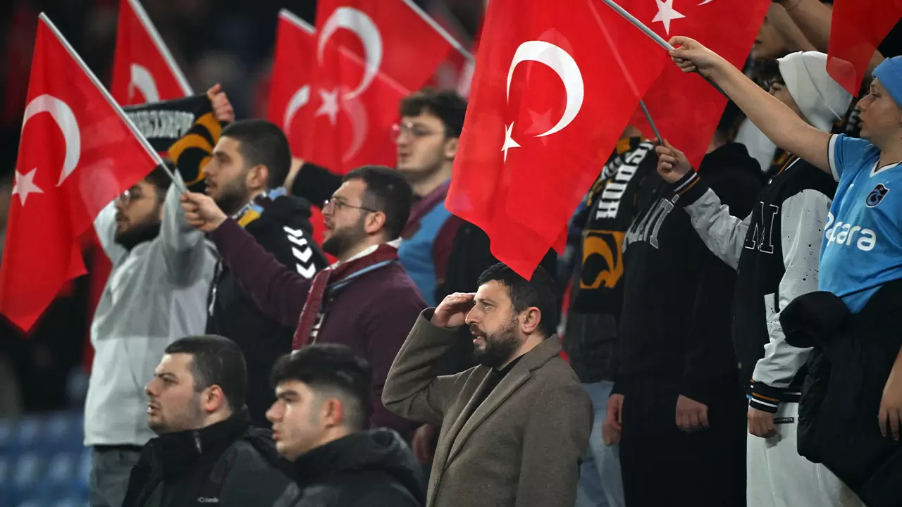 Karşılaşma öncesinde bordo-mavili taraftarlar, takımlarını Türk bayraklarıyla destekledi.