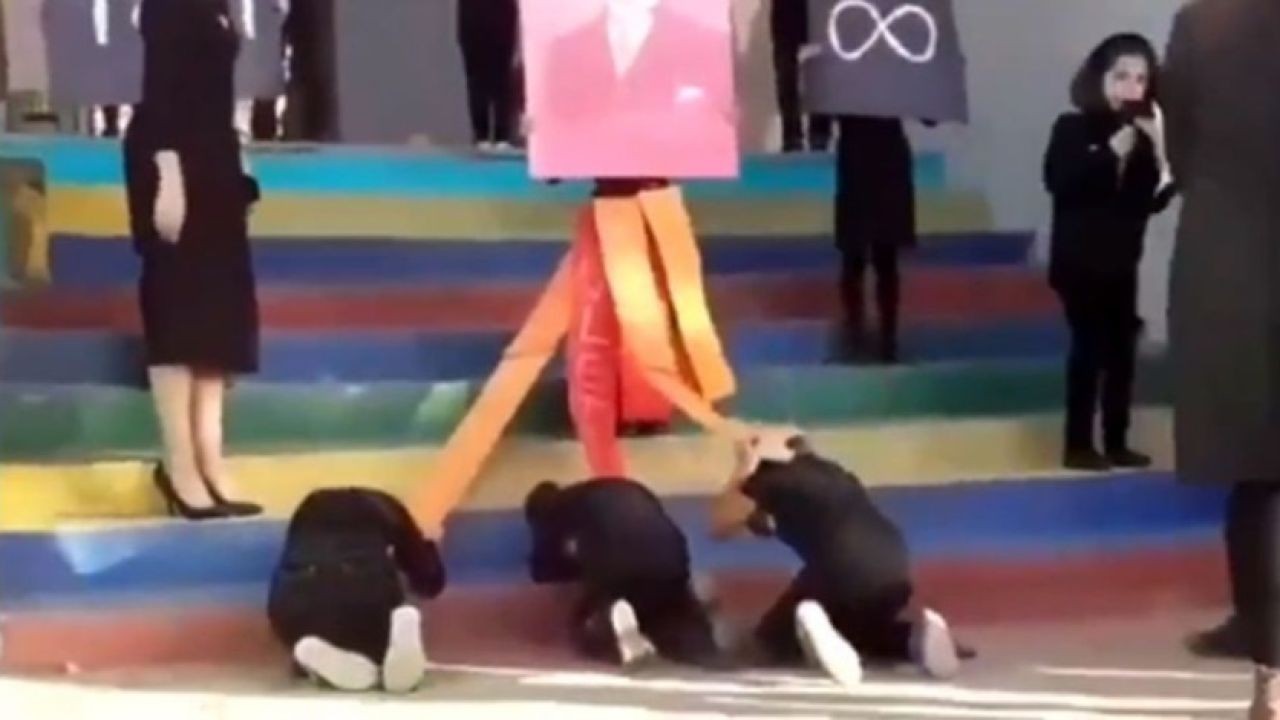 10 Kasım günü bir okulda düzenlenen Atatürk'ü anma etkinliğinde küçük yaşta çocukların Atatürk fotoğrafı önündeki görüntüleri büyük tepki çekmişti.