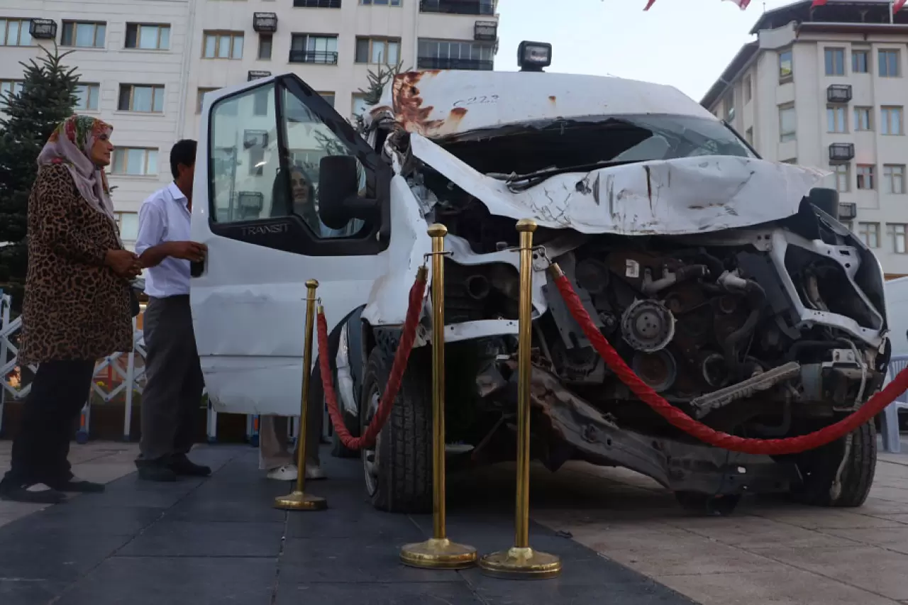 Sivas'ta 15 Temmuz Demokrasi ve Milli Birlik Günü etkinlikleri kapsamında Kongre Müzesi bahçesinde, 2016 yılındaki hain darbe girişimine hasar gören minibüs ziyaretçilerle buluştu.