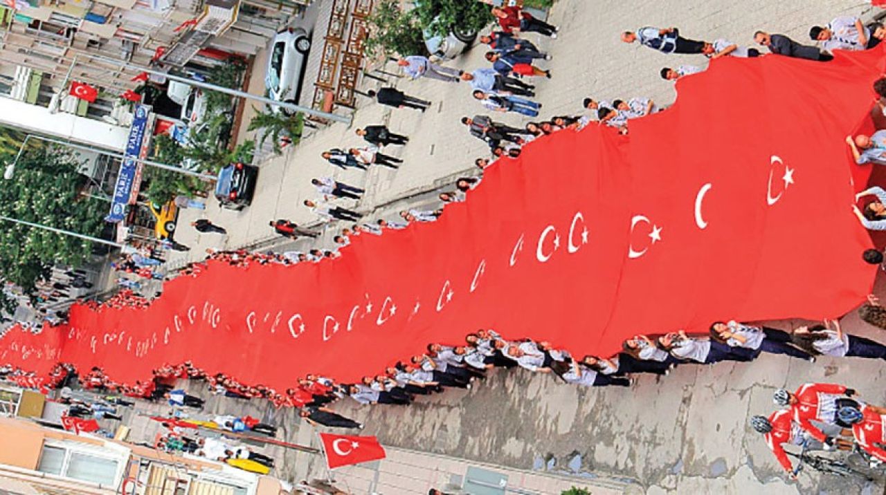 Türkiye'nin dört bir yanından Samsun'a gelen gençler, federasyon sporcuları ile protokol üyeleri ve vatandaşlar, 1919 metre uzunluğundaki Türk bayrağını taşıdı.