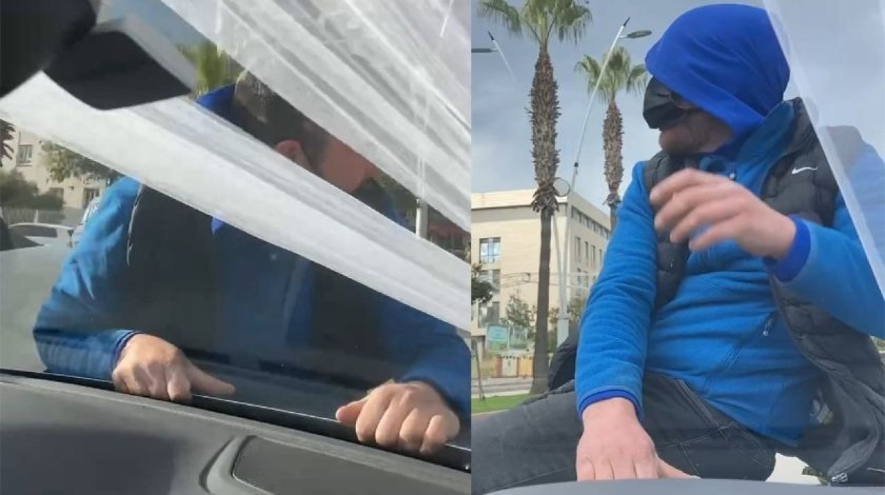 Damat para vermeyerek yeşil ışık yanınca hareket etti. Bunun üzerine aracın ön tarafına oturan şahıs bütün ikazlara rağmen aracın üzerinden inmedi. Damat şahsı indiremeyince yaklaşık 1 kilometre gittikten sonra polis noktası görerek aracını oraya doğru sürdü. Bu durumu fark eden şahıs araçtan atlayıp kaçtı. O anlar ise saniye saniye görüntülendi.
