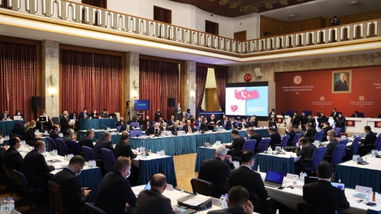 TBMM Başkanı Mustafa Şentop, komisyonda, Meclis Başkanlığının 2023 bütçesinin sunumunu yapıyor.