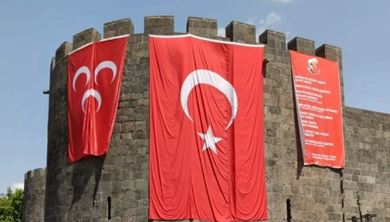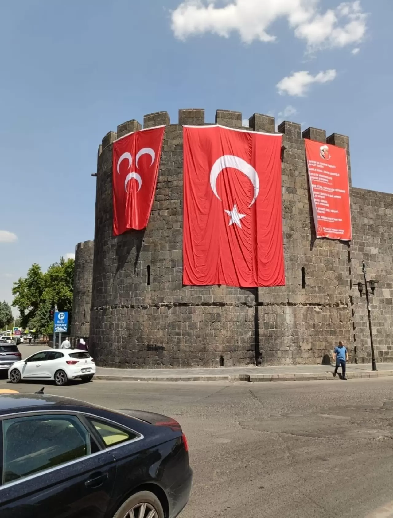 Diyarbakır'ın simgesi haline gelen tarihi surlara asılan 3 hilal sancağı, kentte ve sosyal medyada geniş yankı uyandırdı. O anlara ait görüntüler kısa sürede sosyal medya platformlarında yayıldı.