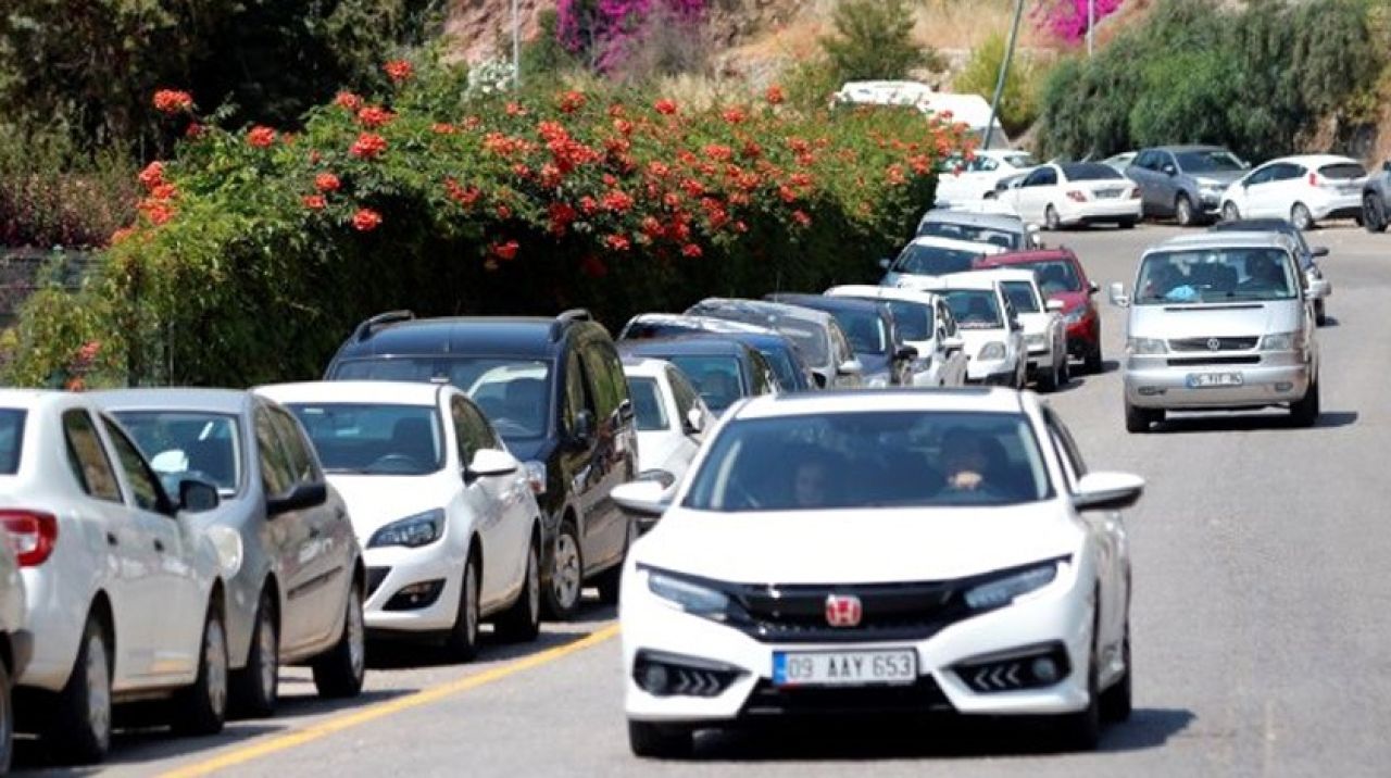 Muğla'nın gözde turistik mahalleleri Akyaya ve Ölüdeniz'in girişlerinde, Ramazan Bayramı tatili dolayısıyla uzun araç kuyrukları oluştu.