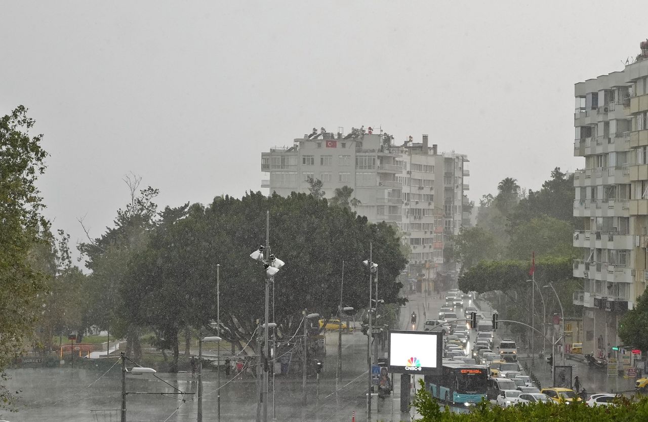 Antalya'da 4 gündür etkili olan sıcaklıklar, son iki gündür 15 dakikalık sağanakla kısa süreliğine de olsa düşüş yaşıyor. Dün 16 derece birden düşen ve sonrasında tekrar yükselen hava sıcaklığı bugün de yine 15 dakika süren yağışla 38 dereceden bir anda 24 dereceye düştü.