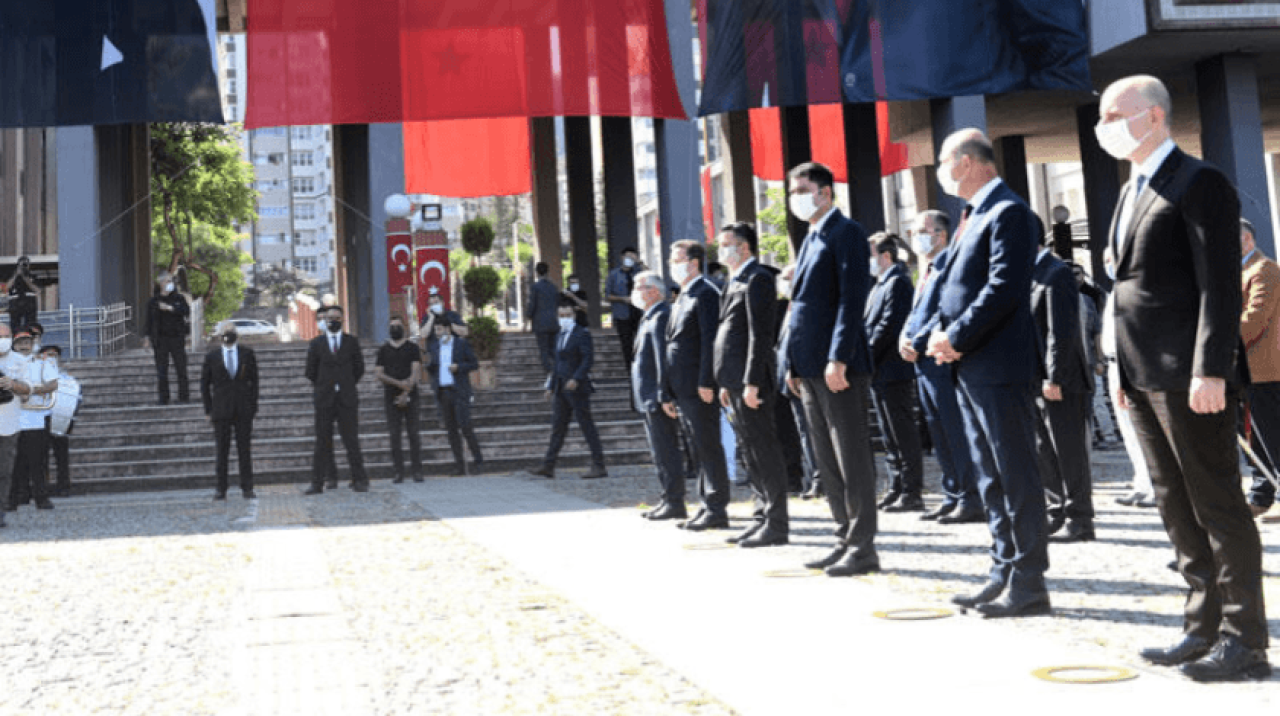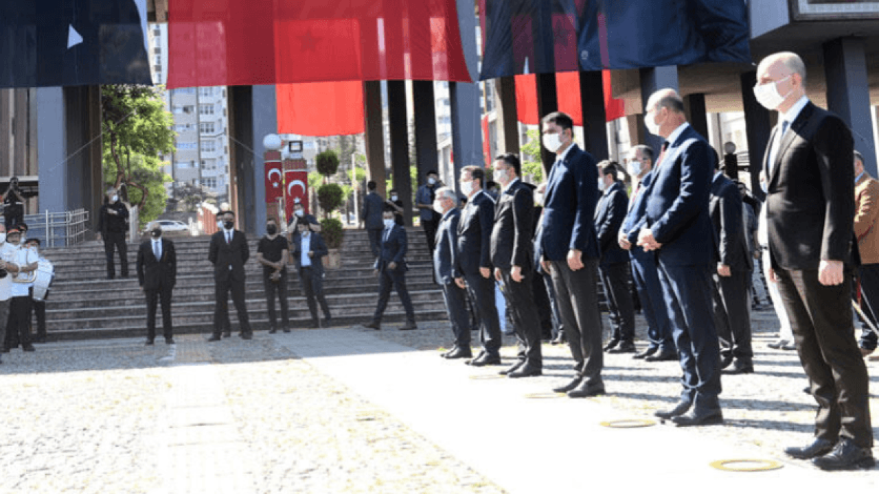 Atatürk Anıtı'na çelenk sunan bakanlar, saygı duruşunda bulunulması ve İstiklal Marşı'nın okunmasının ardından sel bölgesinde inceleme yapmak üzere alandan ayrıldı.