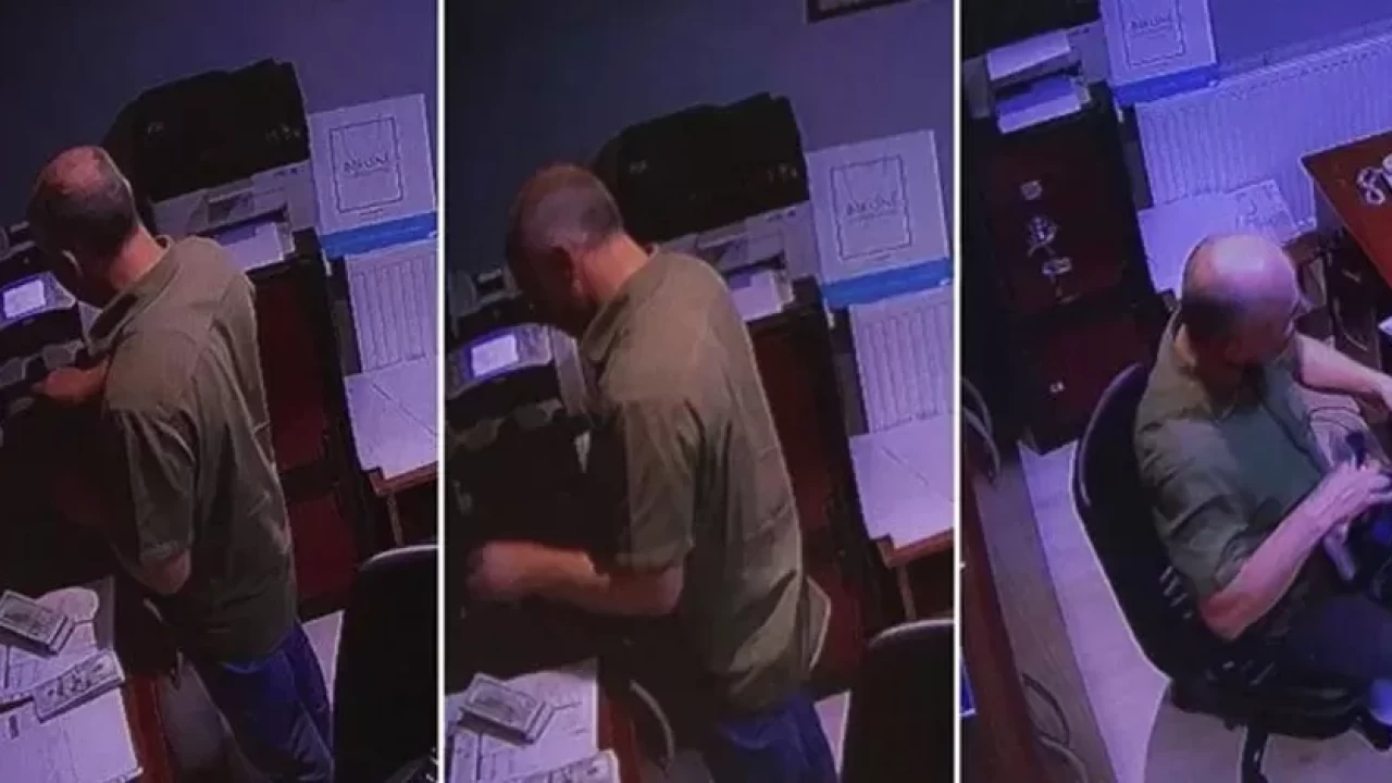 Şüpheli T.Y.'nin paraları kasadan aldığı ve iş yerinden ayrıldığı anlar güvenlik kamerası tarafından görüntülendi.