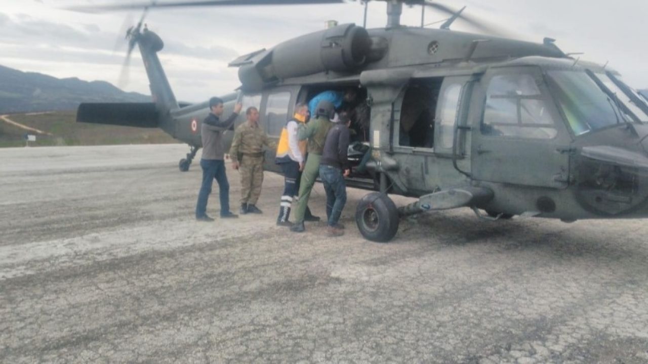 Tuncelili kan ve oksijen değerleri 60’a kadar düştüğü için hayati tehlikesi bulunan 9 aylık bebek askeri helikopterle Malatya’ya sevk edildi.