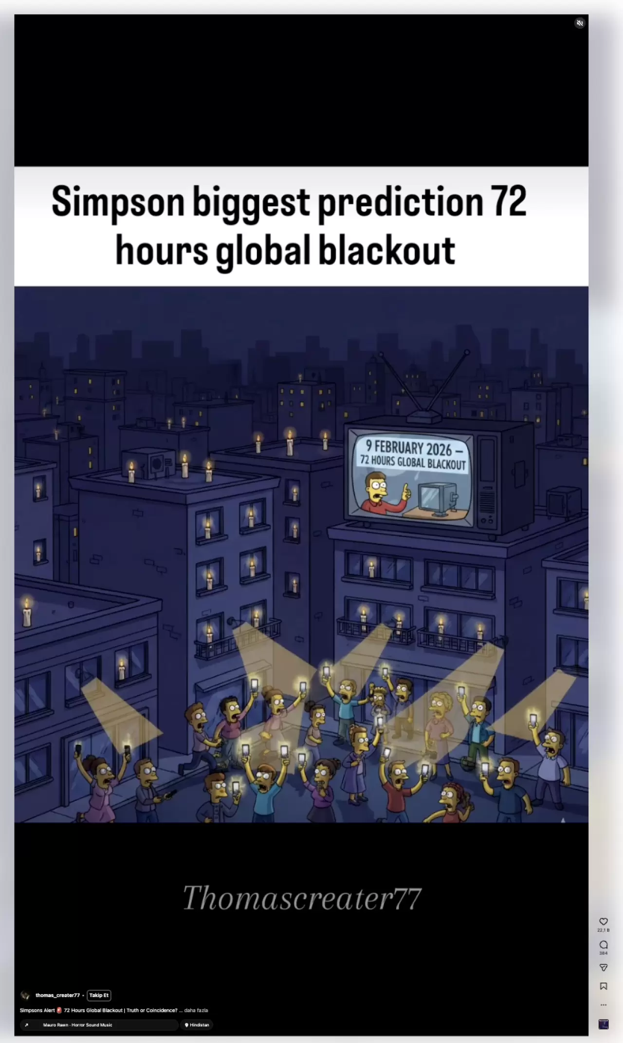 9 Şubat'ta elektrik kesintisi mi var? 72 saatlik elektrik kesintisi olacak mı? soruları gündeme gelen ve merak edilen başlıklar arasında yerini aldı. ABD'de yayınlanan The Simpsons dizisinin 72 saatlik elektrik kehaneti olarak adlandırılan bu durumun gerçeği yansıtıp yansıtmadığı konuşuluyor.