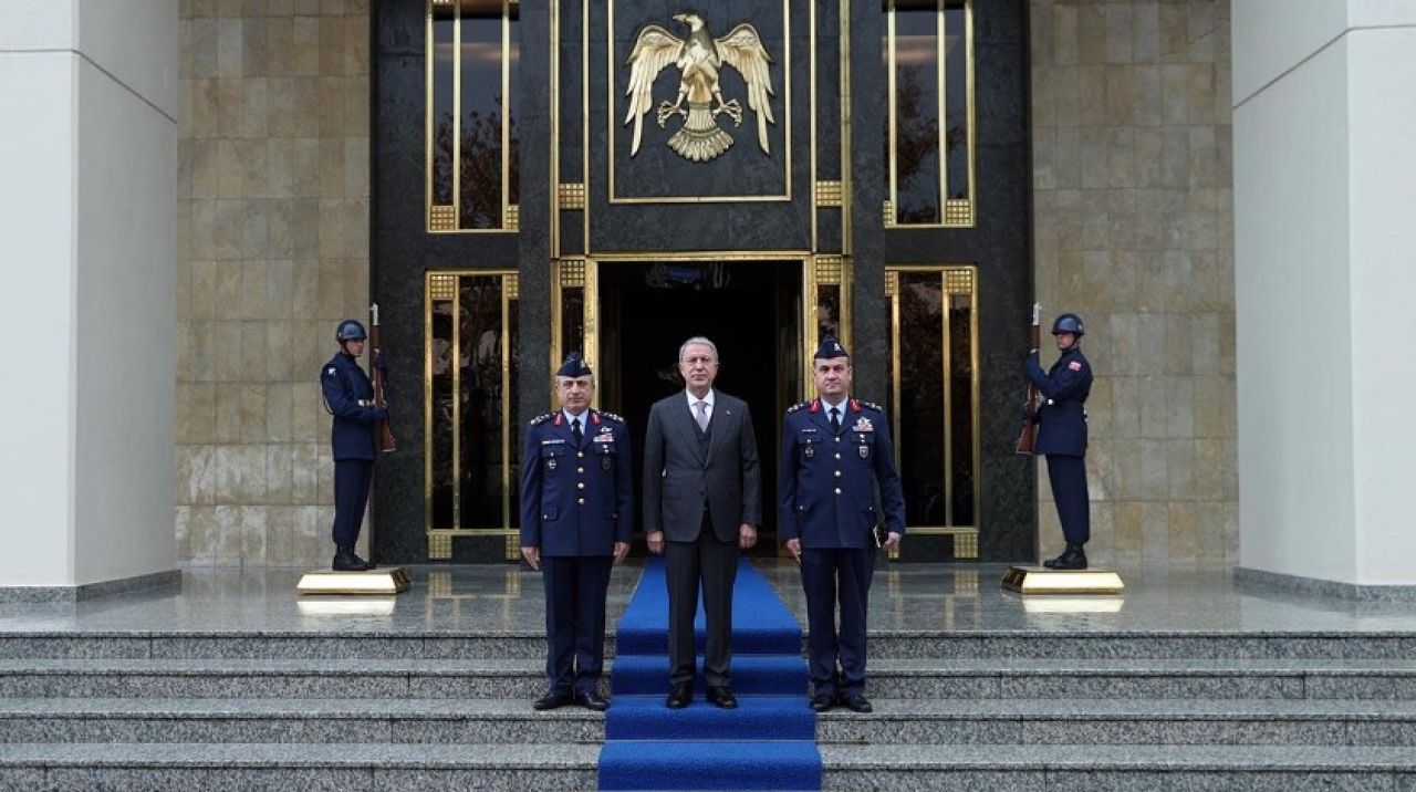 Bakan Akar, Hava Kuvvetleri Komutanlığı'na gelişinde Hava Kuvvetleri Komutanı Orgeneral Atilla Gülan tarafından askeri törenle karşılandı.