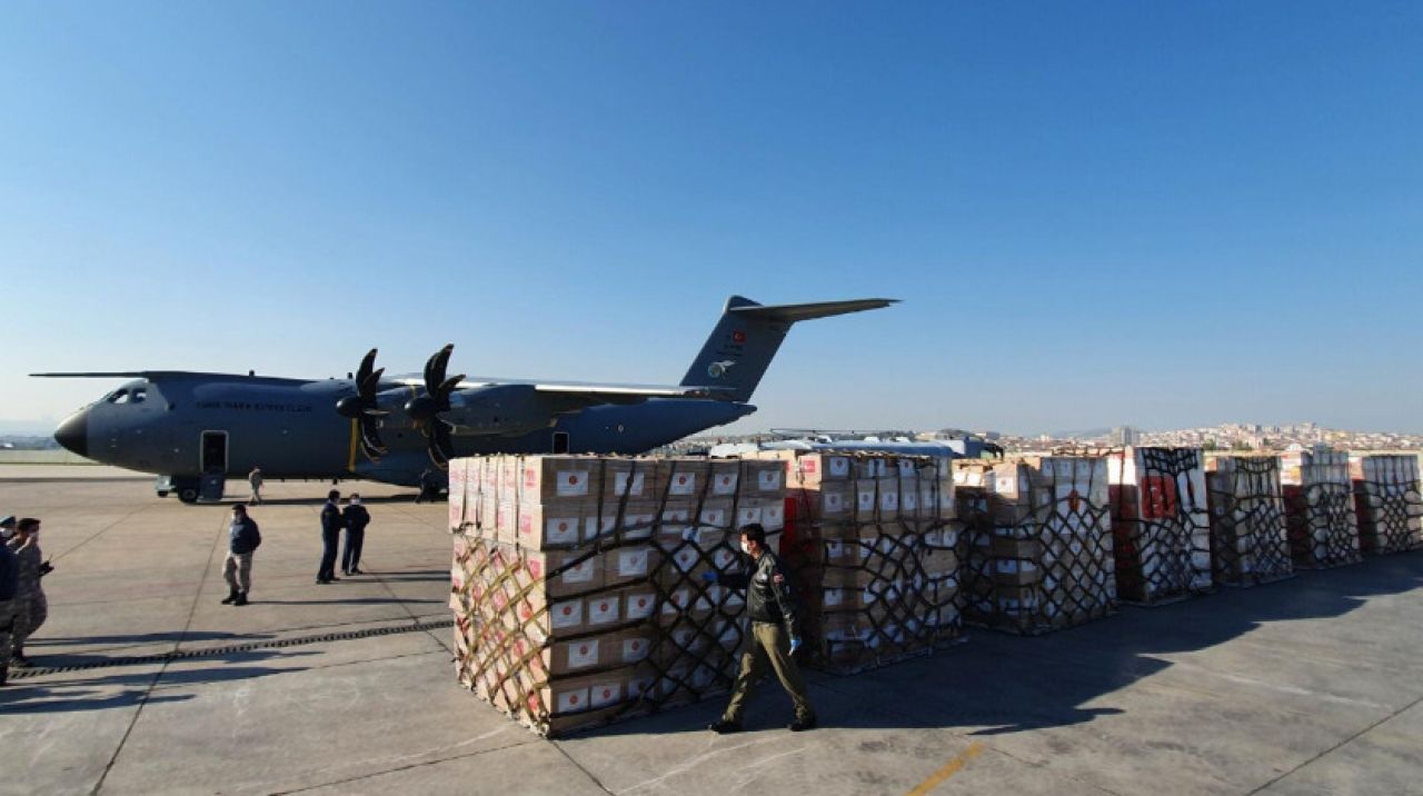 Milli Savunma Bakanlığı sabahın erken saatlerinde ABD'ye gönderilecek yardımların fotoğraflarını sosyal medya hesabından paylaştı. Yapılan paylaşımda şu ifadeler yer aldı: