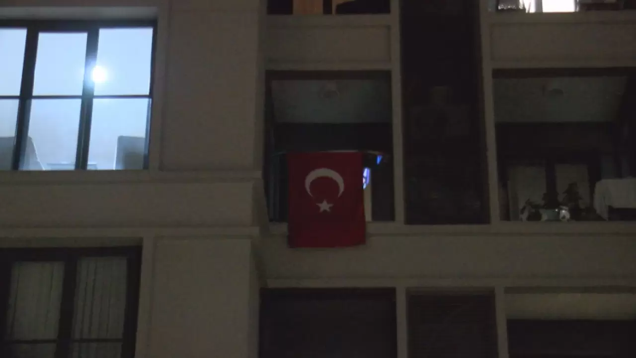 Şehit polis memuru Seçkin Yalçın'ın abisinin Zeytinburnu'ndaki evine Türk Bayrağı asıldı.
