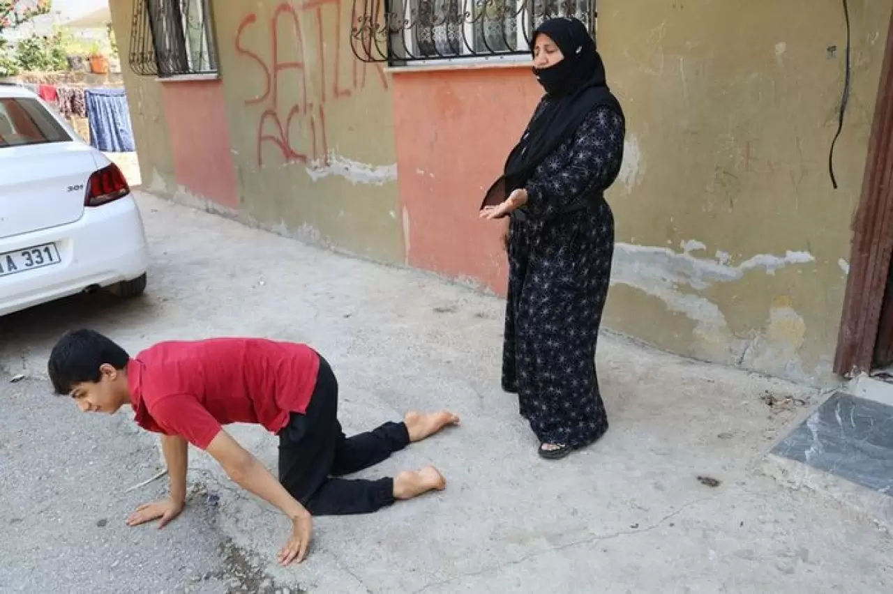 Adana’nın Yüreğir ilçesinde yaşayan zihinsel ve bedensel engelli 15 yaşındaki Enes Çava, tek özgürlüğü olan tekerlekli sandalyesinin çalınmasının ardından sokaklarda emekleyerek dolaşmak zorunda kalıyor.