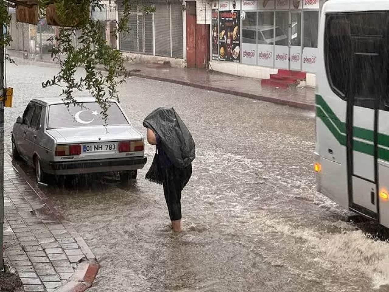 Adana'da sağanak nedeniyle bazı cadde ve sokaklarda su birikintisi oluştu.