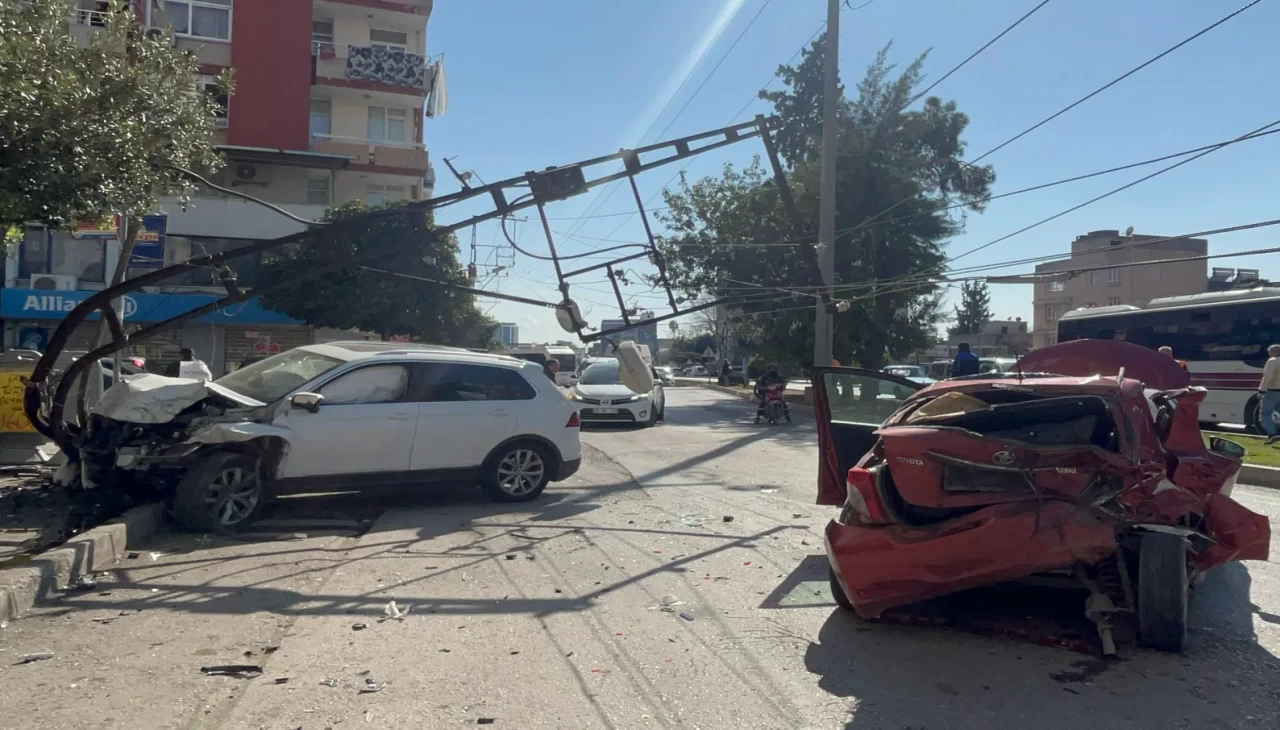 Henüz sürücülerinin kimlikleri belirlenemeyen 01 AUT 646 plakalı cip, kırmızı ışıkta bekleyen 01 PB 877 plakalı otomobile çarptı. Çarpmanın etkisiyle cip, direksiyon hakimiyetini kaybederek yol kenarındaki aydınlatma direğine çarptı ve ancak orada durabildi.