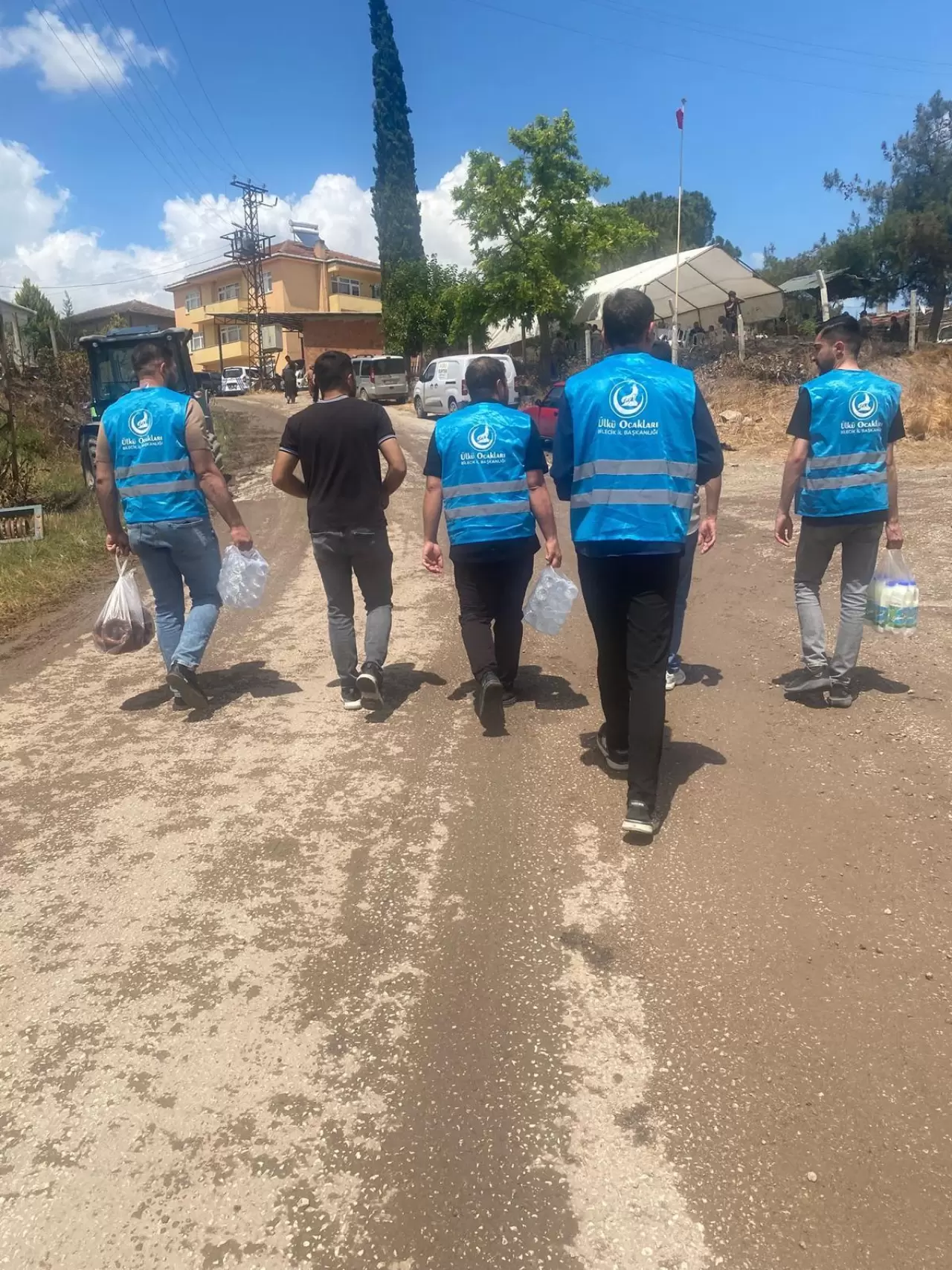 Bununla birlikte, yangından etkilenen vatandaşlara yönelik yardım faaliyetleri de hayata geçirildi. Ülkü Ocakları üyeleri, sahada bulunan ekiplere su, yiyecek ve temel ihtiyaç malzemeleri temin ederek, yangınla mücadele eden kurumlara lojistik destek sağladı.