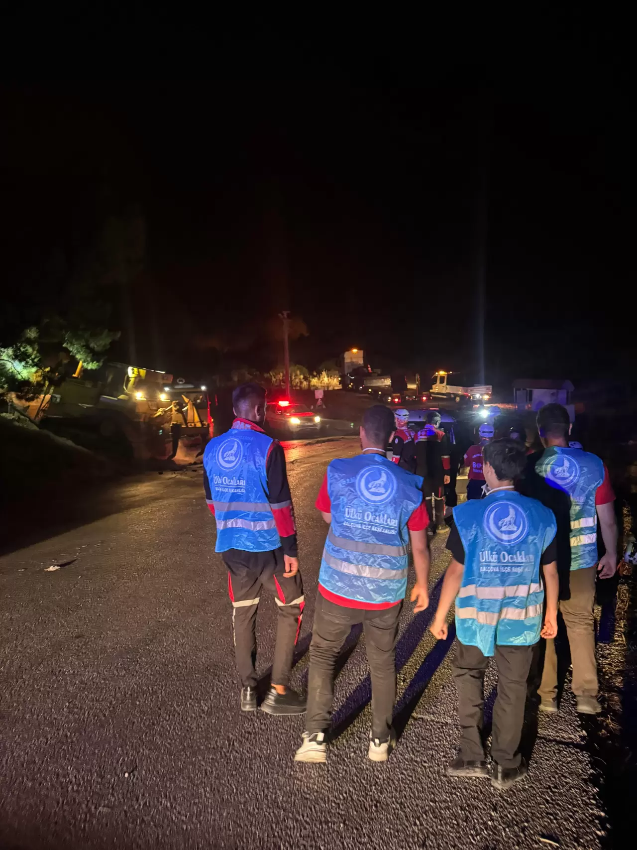 Ülkü Ocakları, sadece sahada değil, lojistik destek noktasında da itfaiye ve gönüllü ekiplerle dayanışma içerisinde oldu. Saha ekiplerine su, gıda ve temel ihtiyaç malzemeleri ulaştırıldı.