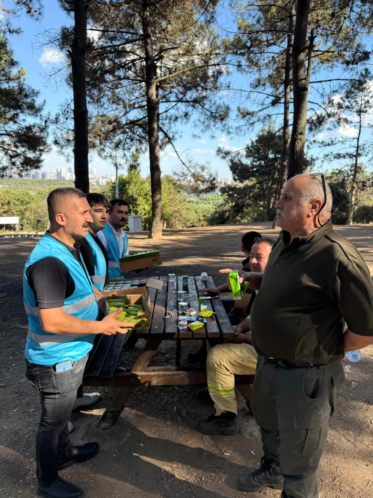 Yangınla mücadele eden itfaiye ve diğer ekiplerin yanında yer alan Ülkü Ocakları ekipleri, sahada görev yapan personellere içecek ikramında bulunarak moral desteği verdi.