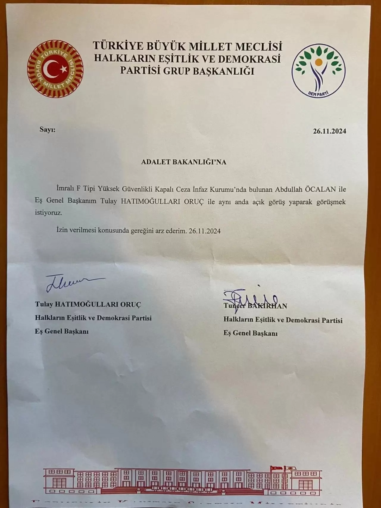 DEM PARTİ, ADALET BAKANLIĞI'NA İMRALI GÖRÜŞMESİ İÇİN BAŞVURU YAPTI