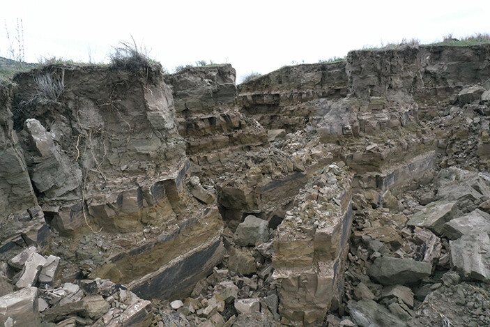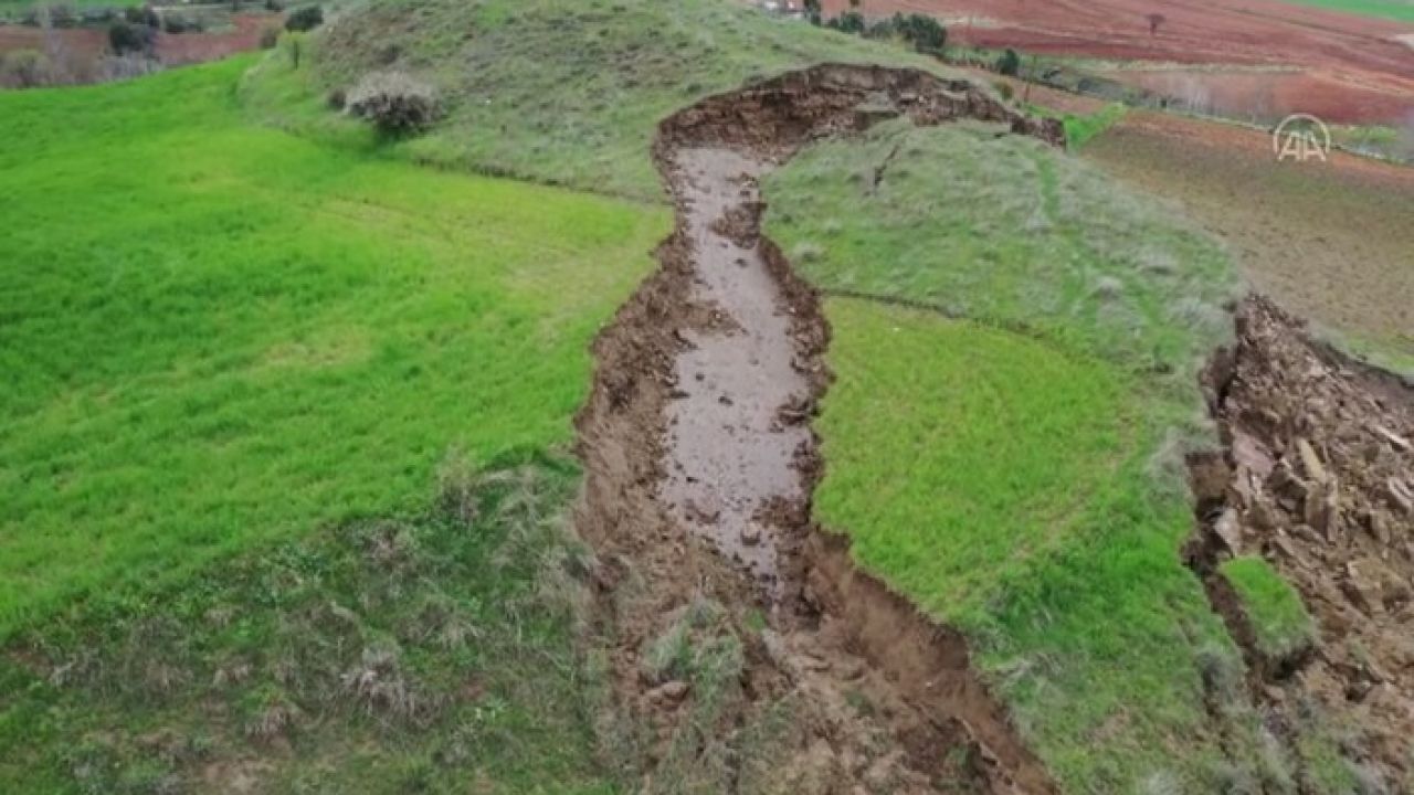 Drone'la görüntülenen yarıklar ve çöküntüler, depremin etkisini gözler önüne serdi.